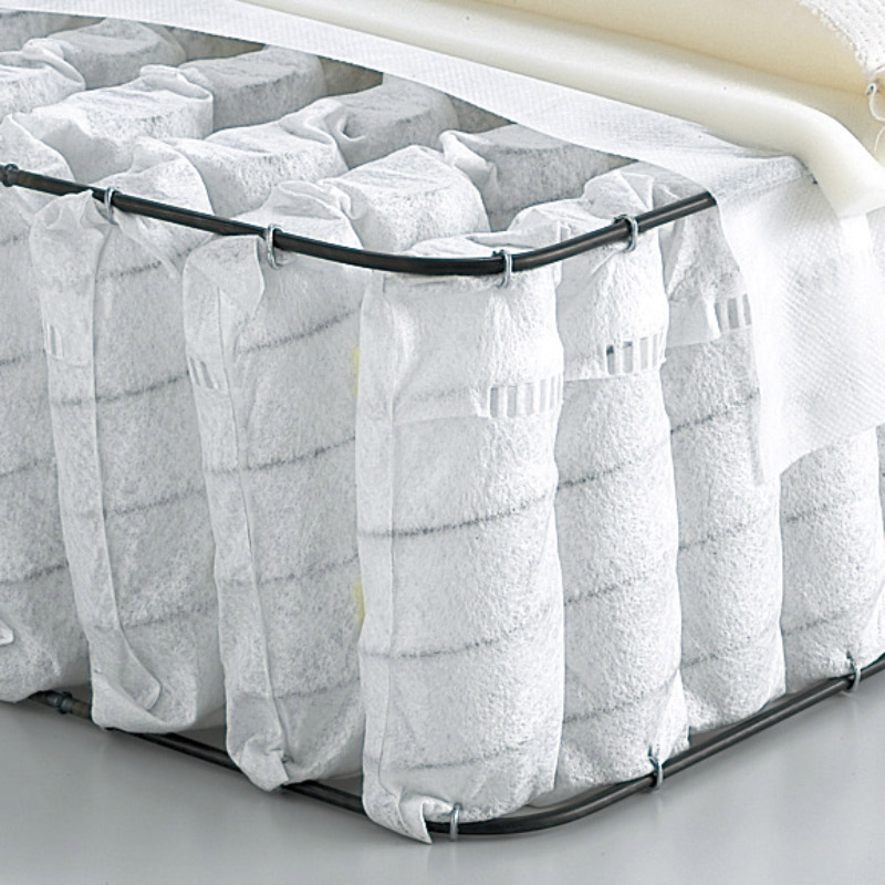 睡眠中のあらゆる動きに添う「ビューティレスト」。特殊な不織布の袋にコイルスプリングをひとつひとつ包み、並行配列させたポケットコイル構造。
