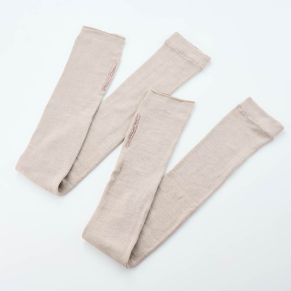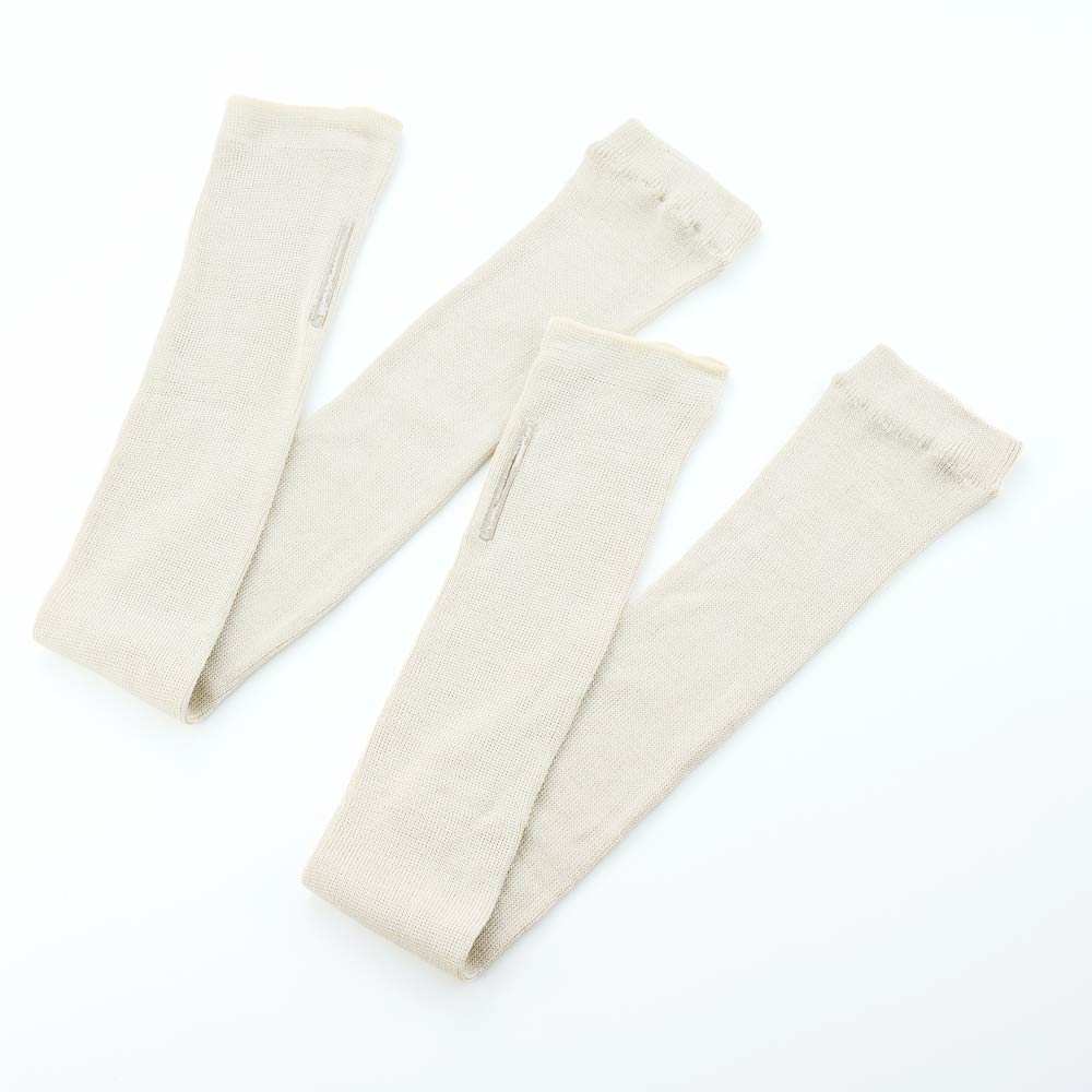 【ディノスでしか買えない】人気のシルク100%UVアームカバー!お気に入りの色でコーディネートを楽しんで。同素材のシルク100%のUVネックカバーも要チェック!!素材にこだわるオトナ世代のためのアームカバーサラサラの優しい肌触り・高級感で人気の素材シルクを使用し、さらにUVカット効果もあるロング丈アームカバーをディノスが企画しました!オシャレさだけでなく、着用感にもこだわり、外出時はもちろん室内の冷房対策としてもおススメです。〜こだわりポイント〜●こだわりの日本製。創業100年以上の老舗国産メーカーが作るアームカバー。●贅沢にシルクを100%使用!生地はもちろん、縫い糸もシルク素材を使用しています。●シルク100%でもリブ編みにすることで、ずり落ちたりせず、腕に滑らかにフィットします。●ロング丈で、半袖やノースリーブのトップスでもしっかり紫外線からカバー。●指穴付きで、手の甲まで覆えるのでシミの出やすい部分もしっかりと守ります。涼やかで、日焼けにも強いシルクシリーズで快適な夏を!〜サイズについて〜長さ約60cm、腕まわり出来上がりサイズ約8cm