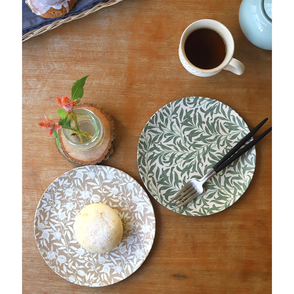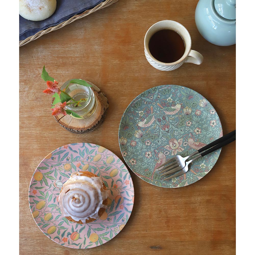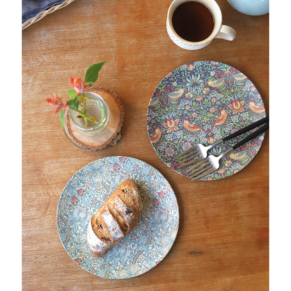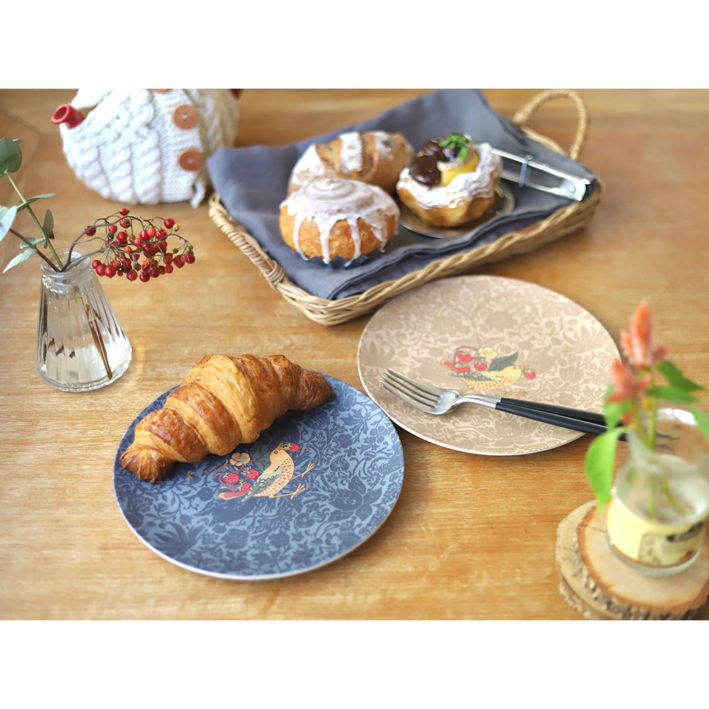 大人気のウィリアム・モリスデザインの割れにくい竹繊維の食器シリーズ。●エコでサステナブルな、竹ファイバー素材のプレート。マットな質感と優しい雰囲気がテーブルをナチュラルにドレスアップしてくれるアイテム。竹繊維で落としても割れにくく大変軽量なので扱いがとても楽です。●早く育ちすぎてしまった、通常捨ててしまう竹のファイバーを利用して土に還るため環境に優しく、プラスチックに代わる素材として注目を集めている素材です。●直径約20cmの使い勝手のいいサイズ感。軽くて安全なため、キャンプやアウトドアなどにもおすすめです。
