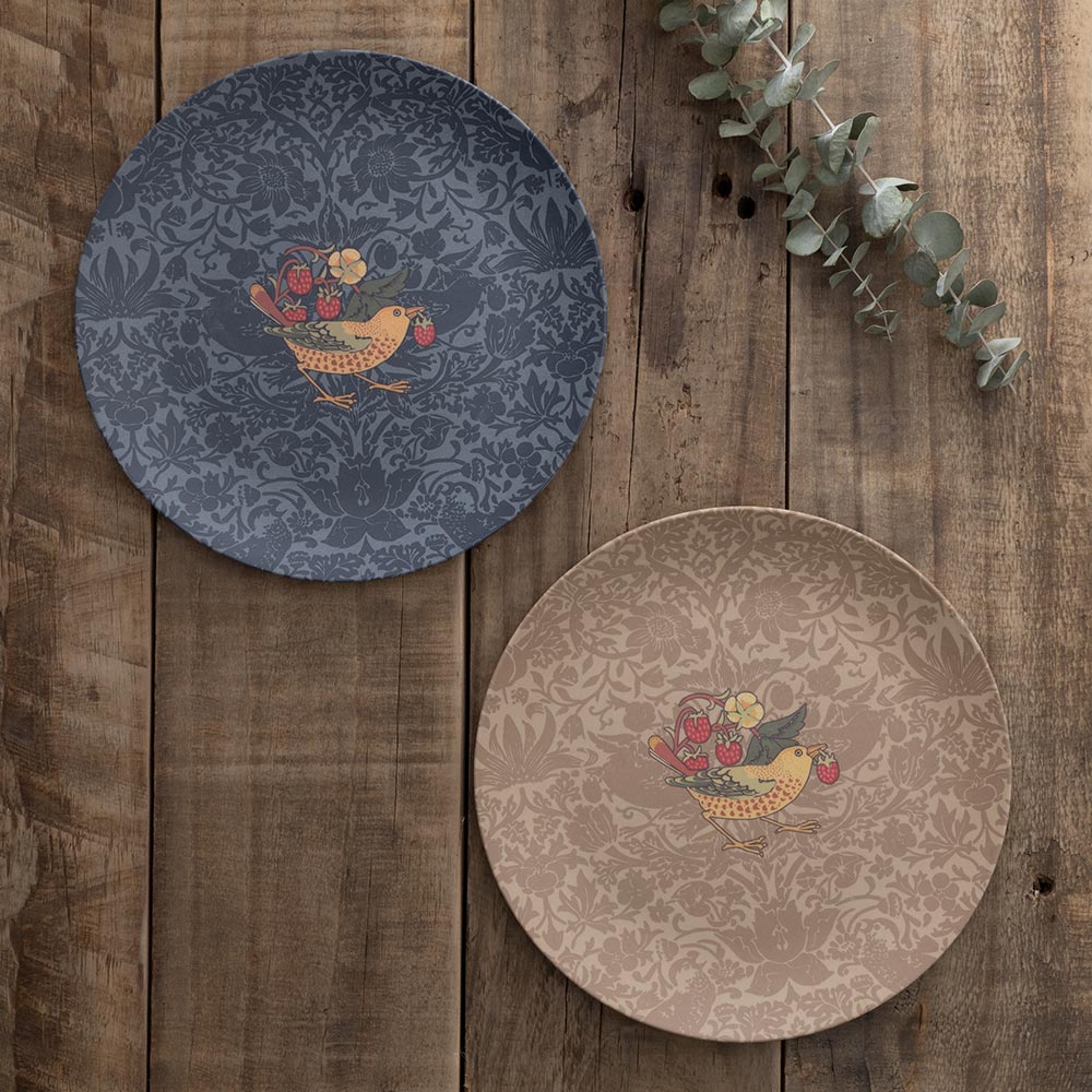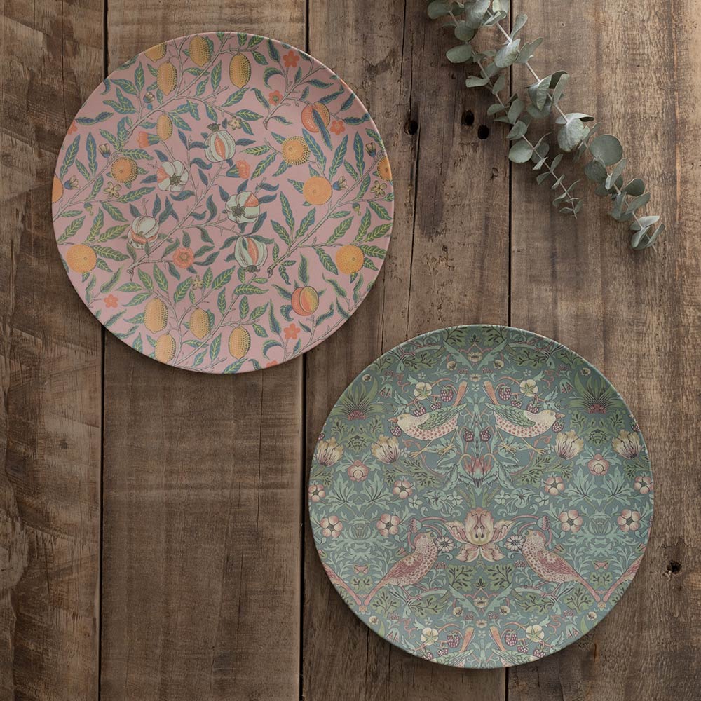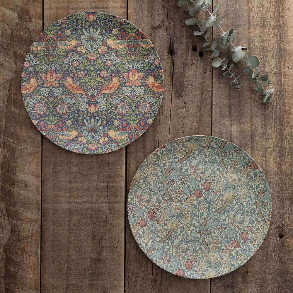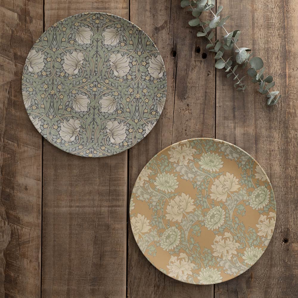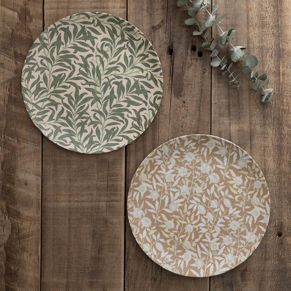 大人気のウィリアム・モリスデザインの割れにくい竹繊維の食器シリーズ。●エコでサステナブルな、竹ファイバー素材のプレート。マットな質感と優しい雰囲気がテーブルをナチュラルにドレスアップしてくれるアイテム。竹繊維で落としても割れにくく大変軽量なので扱いがとても楽です。●早く育ちすぎてしまった、通常捨ててしまう竹のファイバーを利用して土に還るため環境に優しく、プラスチックに代わる素材として注目を集めている素材です。●直径約20cmの使い勝手のいいサイズ感。軽くて安全なため、キャンプやアウトドアなどにもおすすめです。