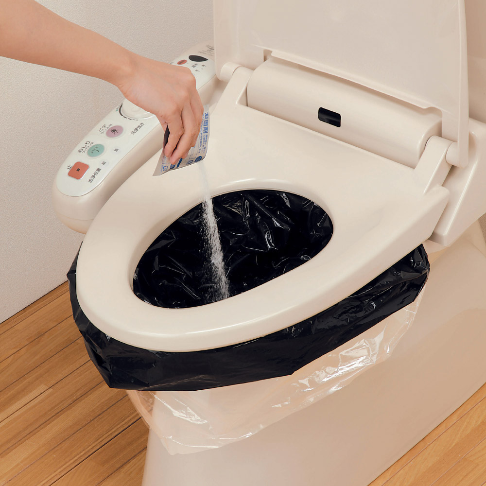 ●災害時や断水時の簡易トイレにも役立ちます。●汚物袋50枚、凝固剤50個、水濡れ防止袋5枚付きです。●断水時にご家庭のトイレでご使用の際、便器内のたまった水に汚物袋が直接触れないので袋の交換時に水だれしないので安心です。(水濡れ防止袋5枚付き)●アウトドアや渋滞中の高速道路で悩まされるトイレ問題にも。いざというときの簡易トイレとして。●すぐに固まる凝固剤付きなので、使用後の処理も簡単です。