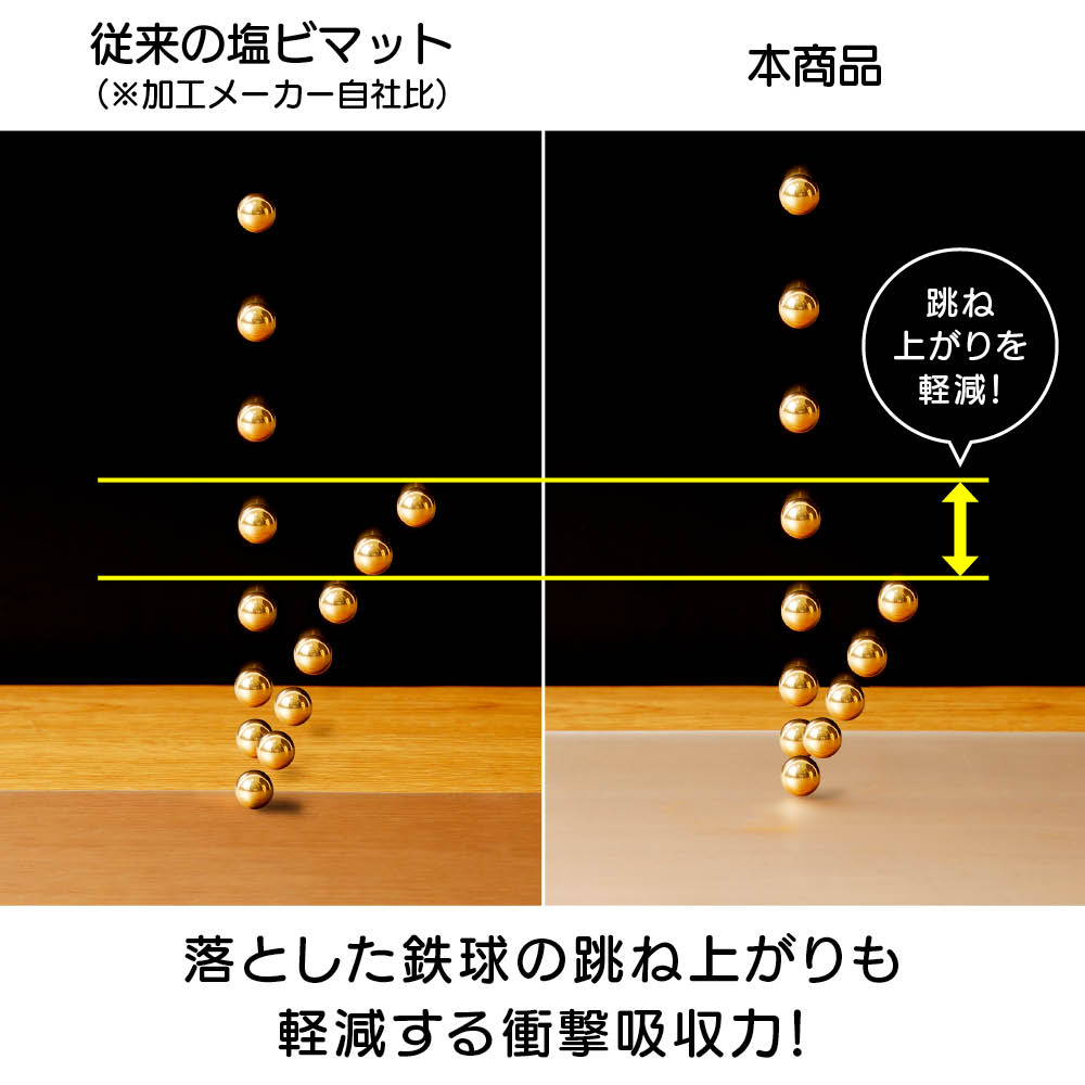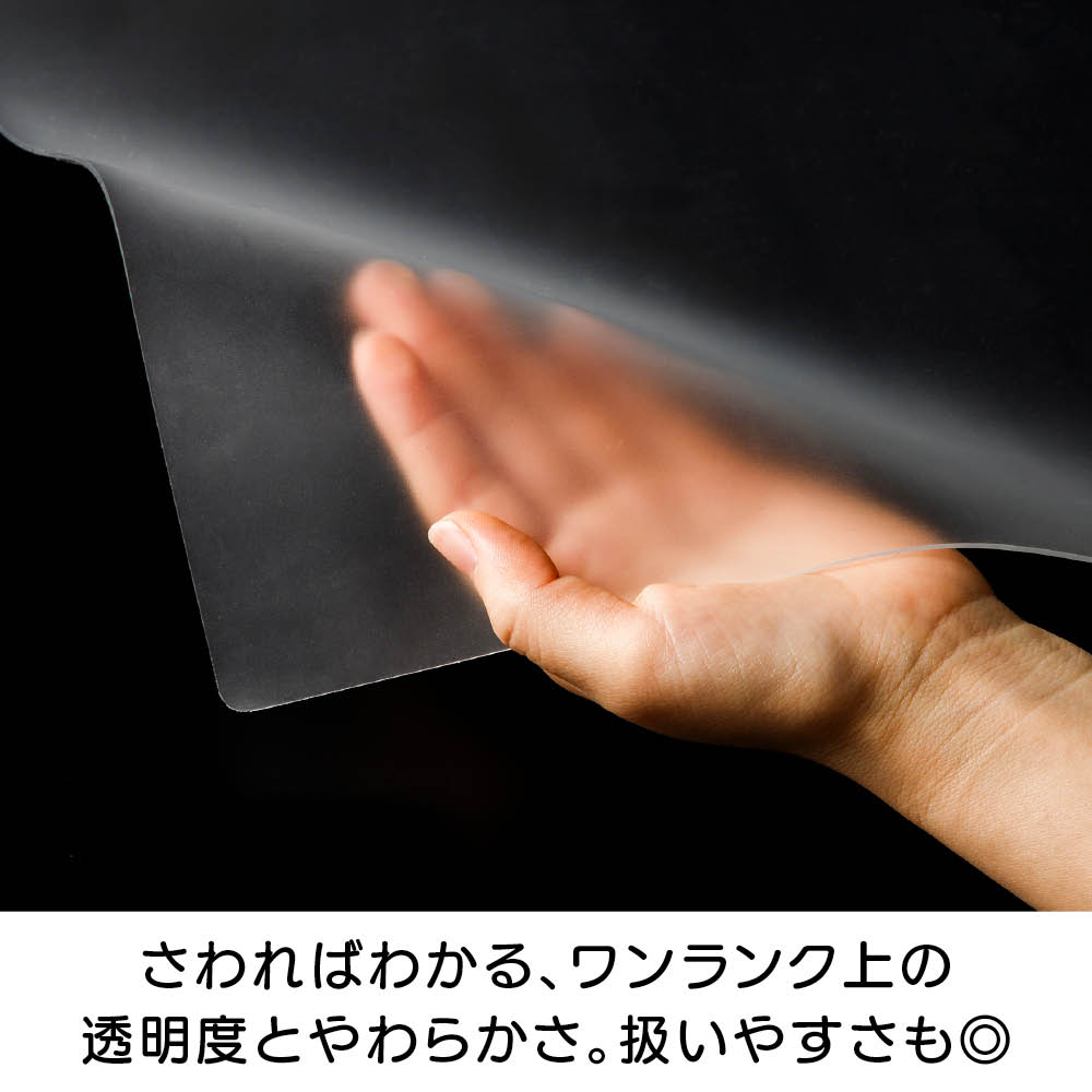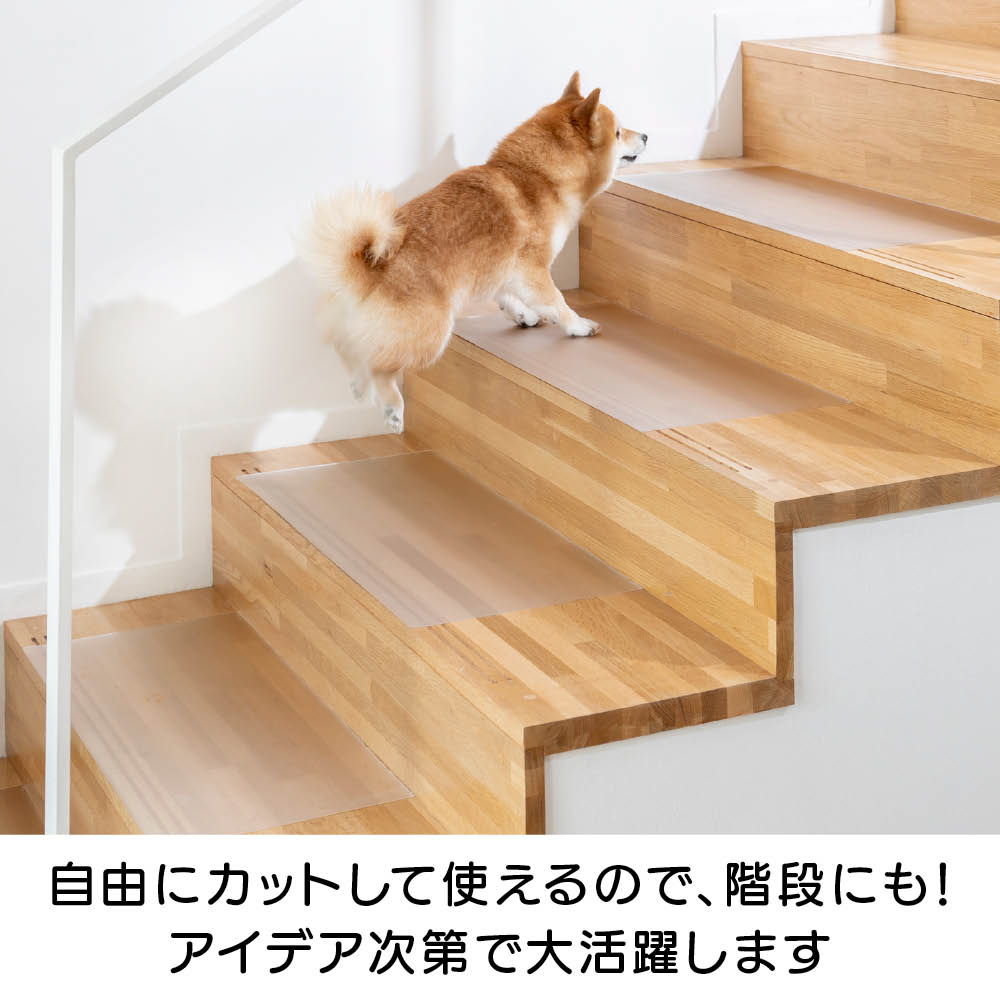 滑りやすいフローリングにサッと敷くだけ!透明だからインテリアを損なわず、敷くだけで床を守れる、ペットの足への負担軽減をめざしてつくった高機能マットです。クラレプラスチックス開発の特殊素材「アーネストン(R)」採用で、防滑・衝撃吸収・耐久性に優れ、汚れてもサッと拭くだけ。水洗いやカットもOKで、使い勝手の良さも魅力です。敷いても気づかないほど自然。触れてわかる、上質な透明感とやわらかさ美しいフローリングの質感を損なわない高い透明度とクラレプラスチックス開発の素材ならではのしなやかさが魅力。サッと拭けて、丸洗いもOK!毎日清潔&長く使える安心感水分や汚れがしみ込まないから、ペットのトイレ下などに敷いてもサッと拭くだけで清潔に。マットは大判サイズ。組み合わせて必要な場所だけ自由に使えますタイル型だから、ペットの動線や生活シーンに合わせてレイアウト自在。わずか約1mm&角はゆるやかなR形状に。つまずきにくく、安全性も◎試作段階で"めくれやすさ"に着目し、角を直角からゆるやかなR形状に改良。引っかかりにくく、つまずきも軽減。扉の開閉や引き出しにも干渉しにくいです。幅広い分野で活躍!クラレプラスチックス開発の高機能素材「アーネストン(R)」スポーツや医療、生活用品から車のダッシュボードの滑り止めまでーーー多彩な分野で採用されるクラレプラスチックスの高機能樹脂「アーネストン(R)」を使用。防滑・衝撃吸収・耐久性に優れ、信頼の品質を支えています。落とした鉄球の跳ね上がりも軽減する衝撃吸収力!クラレプラスチックスの高機能素材「アーネストン(R)」は、落とした鉄球のバウンド距離を軽減させる衝撃吸収力。足腰への負担が少ないことを目指して開発しました。驚きの防滑性。こんなに傾けてもグラスをキープ!シートを敷いたテーブルを傾けても、グラスが滑らずしっかりキープ。高い防滑性で、歩いても滑りにくい仕様です。ピタッと吸着、でも床を傷つけないやさしい安心設計裏面には高い吸着力を持つ特殊素材を採用。垂直な壁面にくっつけても落ちにくいグリップ力で、床にもズレずにしっかり密着します。接着剤などの成分は不使用だからフローリングを傷つけず、安心して使えます。※使用前に裏面の保護フィルムをはがしてください。「ワンちゃんの健康をサポートするために床材にもこだわりましょう」「ペットにとって、滑りやすく硬い床は足腰への負担となり、転倒や関節への衝撃につながることがあります。特に、骨の発達段階にある仔犬や、足腰が弱くなるシニア期の犬にとっては注意が必要です。実際、行動が制限されることで筋力が低下してしまうケースも少なくありません。このマットは非常に滑りにくく、体勢を安定させやすいのが特長です。私自身、使用してみて、愛犬がしっかり踏ん張れ、安心感がありました。また、水分が下に染み込まず、丸洗いもできるので、これまで使っていたマットに比べて衛生的に長く使える点も嬉しいポイントです。ワンちゃんの健康をサポートするためにも床材にこだわることは重要です。体勢を安定させやすくするためにも、滑りにくい床材を選びましょう。」ペットの動線に合わせて自由に敷ける。見た目もすっきり!タイル型だから、活動範囲が狭まるシニア期のペットの動きに合わせて必要なところだけ敷くのも簡単。