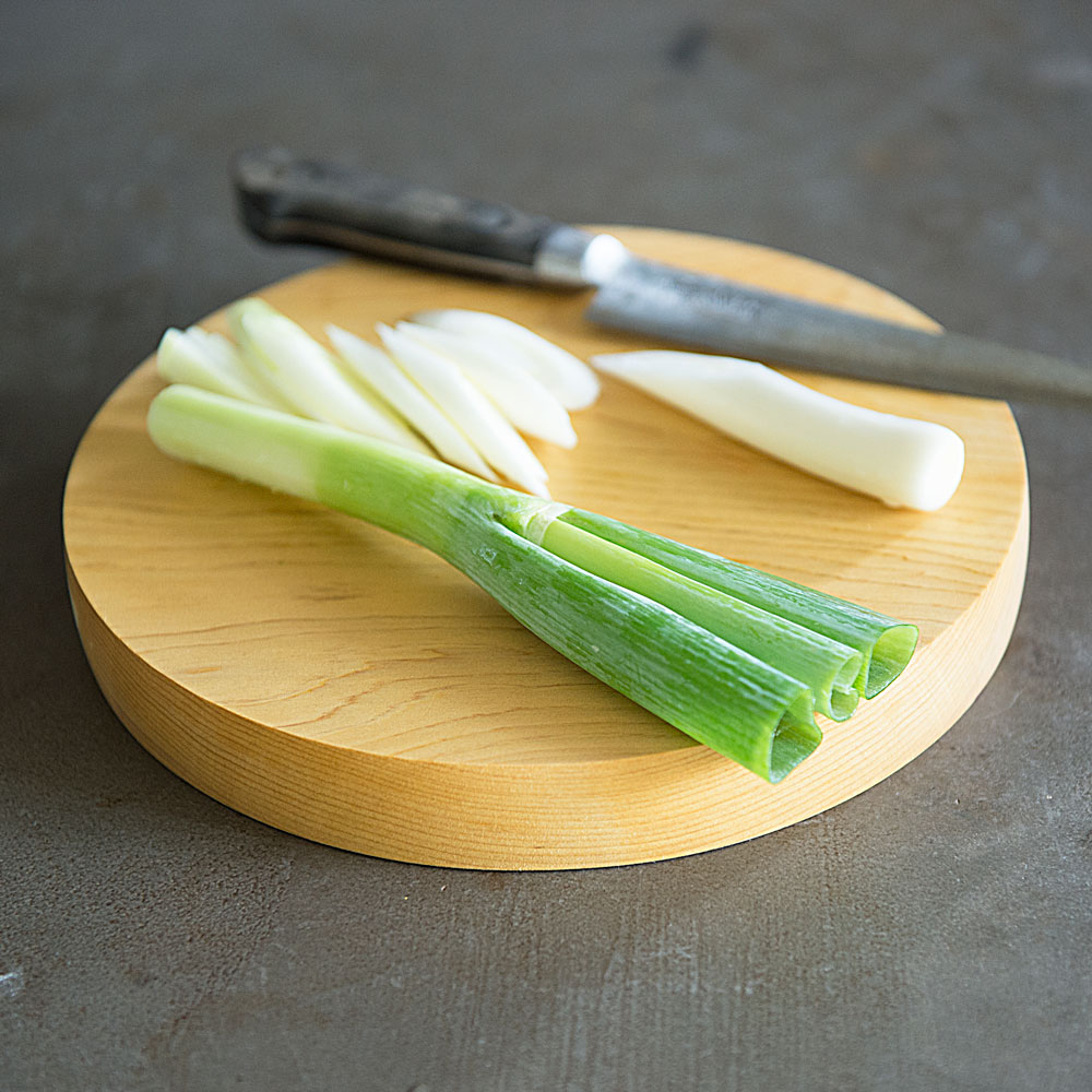 「丸型はまな板を回しながら、複数の食材を切ることもできます。」