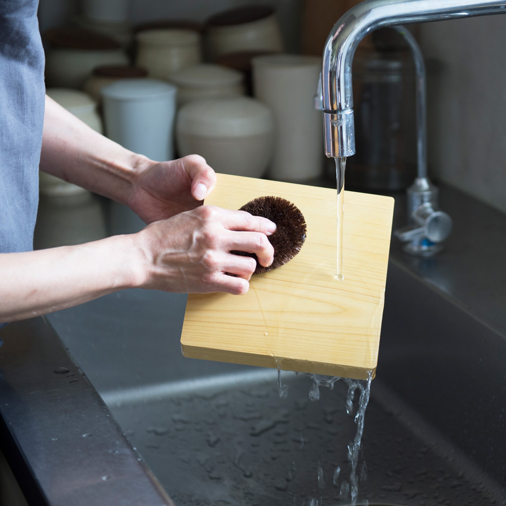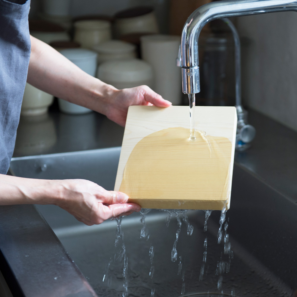 「使用後はたわしでゴシゴシ水洗い。食器用洗剤は木の油分も落としてしまうので控えめに。私は肉や魚を切った時にだけ使うようにしています。」