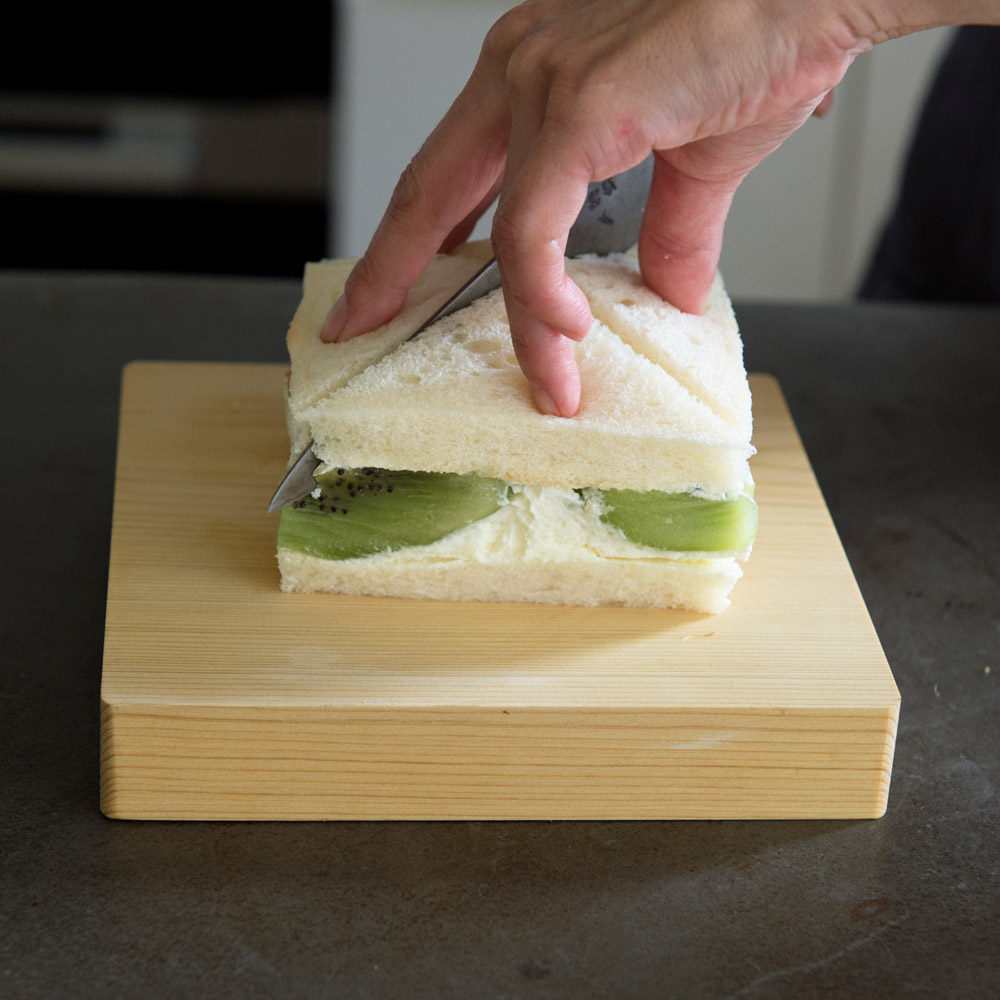 「カットするのにやや技術を要するフルーツサンドなども、安定感のあるまな板なら上手に切れますね。」