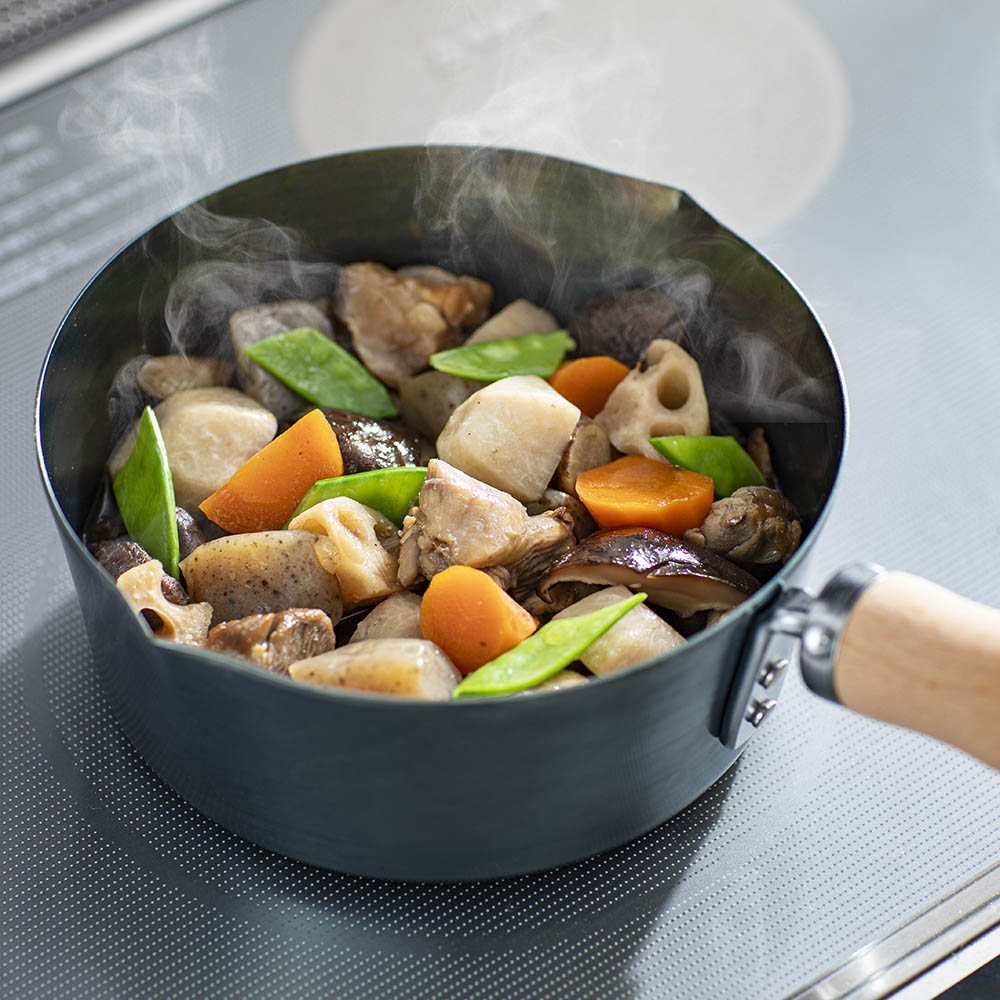 いつもの片手鍋をこの鉄の小鍋に変えるだけで、不足しがちな鉄分を自然に補えます。白湯やコーヒーの湯沸かし、味噌汁作りにも便利な直径約18cm。ガス火・IHにも対応。