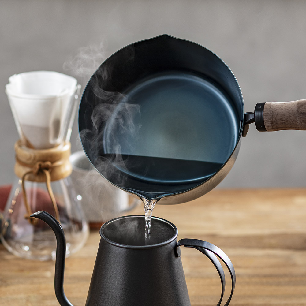 鉄の小鍋で、まろやかなおいしい白湯を。