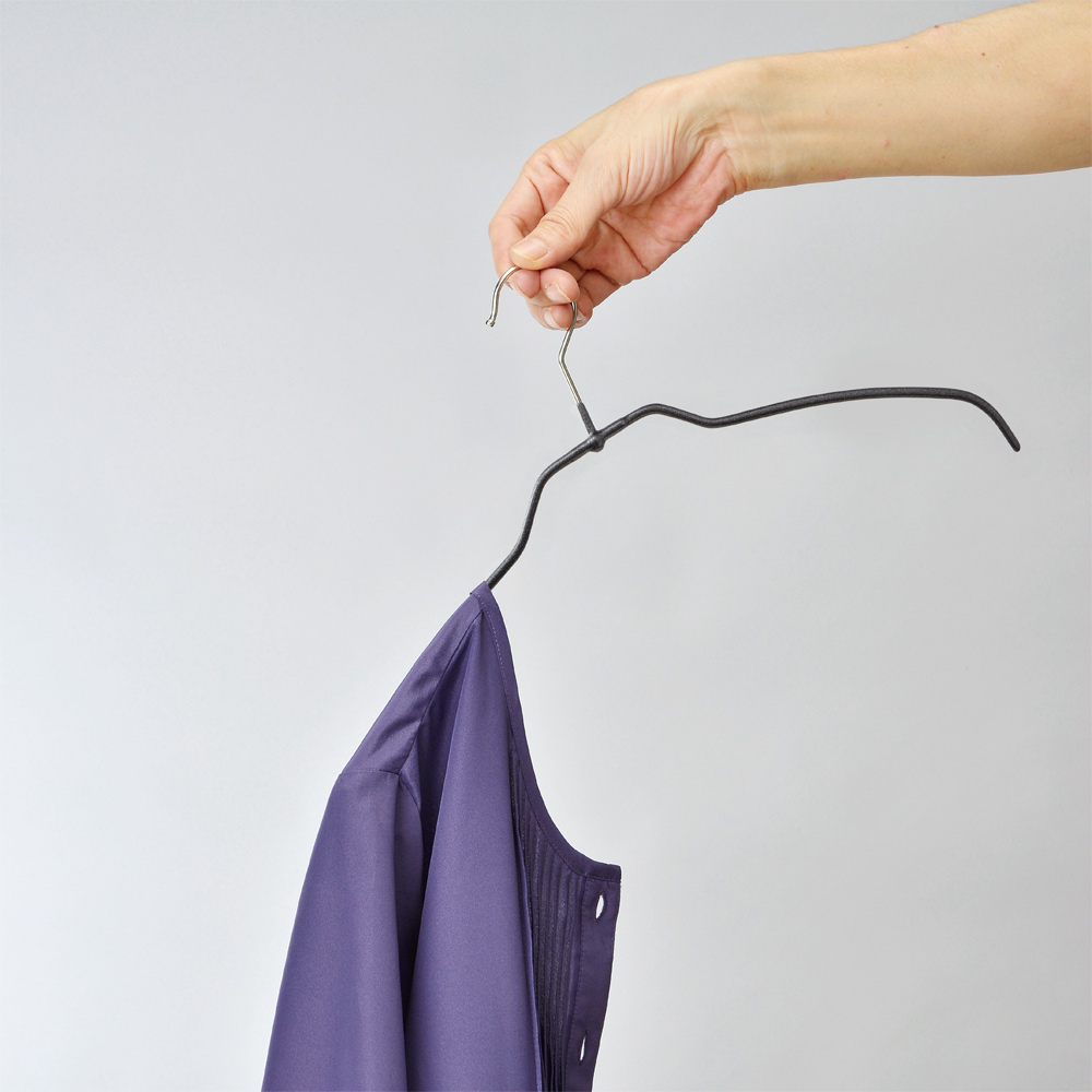 ずり落ちにくく、収納効率アップ!ハンガーのお悩みを一気に解消する「MAWAハンガー」から、より省スペースにお使いいただける「MAWAスリムハンガー」15本セットをご用意しました。「MAWAスリムハンガー」は服をかける部分の太さが「4mm」!薄手のカーディガンやブラウスなどにピッタリです。人体ハンガーは、人体に近い丸みを帯びた肩ラインが特徴。一般的なハンガーでは肩の出てしまうニットの型崩れも防止します。ギュウギュウに詰まったクローゼットが見違える!服をかける部分の厚みがわずか4mm!通常のMAWAハンガーが1cmなので、より省スペースですっきり収納できます。シャツやカーディガン、ブラウスなど、薄手の衣類におすすめです。特殊コーティング加工で、滑りにくい!MAWAハンガーいちばんの特長は、その滑りにくさ。ノンスリップコーティング加工で、襟の開いたブラウスやキャミソール、レーヨンなど滑りやすい素材のトップスもしっかりホールド。人体型は、人体に近い丸みを帯びた肩ラインが特徴。通常のハンガーでは肩の出てしまうニットの型崩れも防止します。「気づいたら服がクローゼットの中に落ちてた…」「出そうとしたら隣の服が落っこちた…」なんて悩みはもうありません。60年以上ハンガーを製造してきた、ドイツのMAWA GmbH (マワ社)MAWA GmbH (マワ社)は1948年にドイツで創業した老舗ハンガーメーカー。60年以上の実績を誇り、ドイツに特徴的な品質志向の企業文化の中で、伝統的な物作り企業の概念を大切にしています。機能性、耐久性に優れたノンスリップコーティング加工のハンガーが世界中で愛されています。