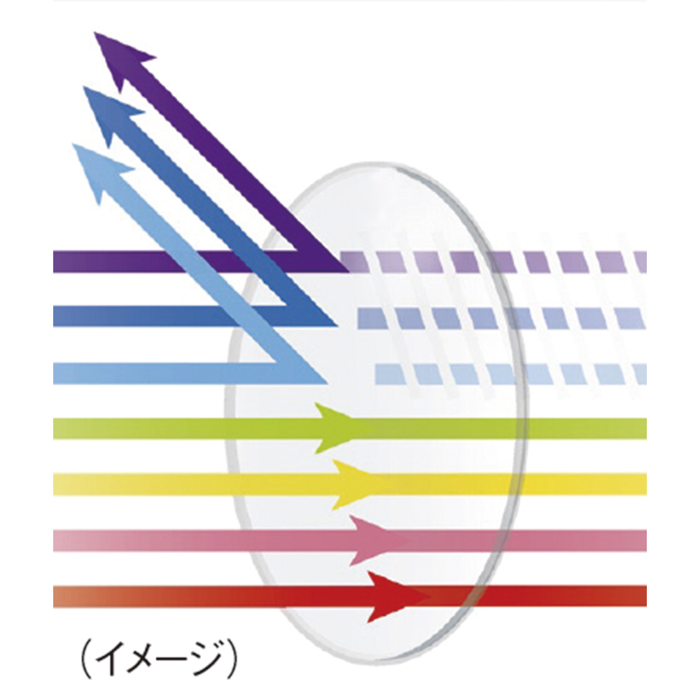 「ハイドレンズ」で紫外線はもちろん眩しいと人の目に感じやすい「青色光線(太陽光・人口灯に含まれるエネルギーの強い光)」をなだらかにカット
