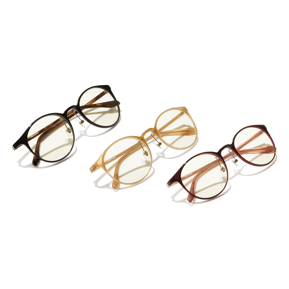左から クリアレンズ(エ)ブラック (ア)グレージュ (ウ)ピンク