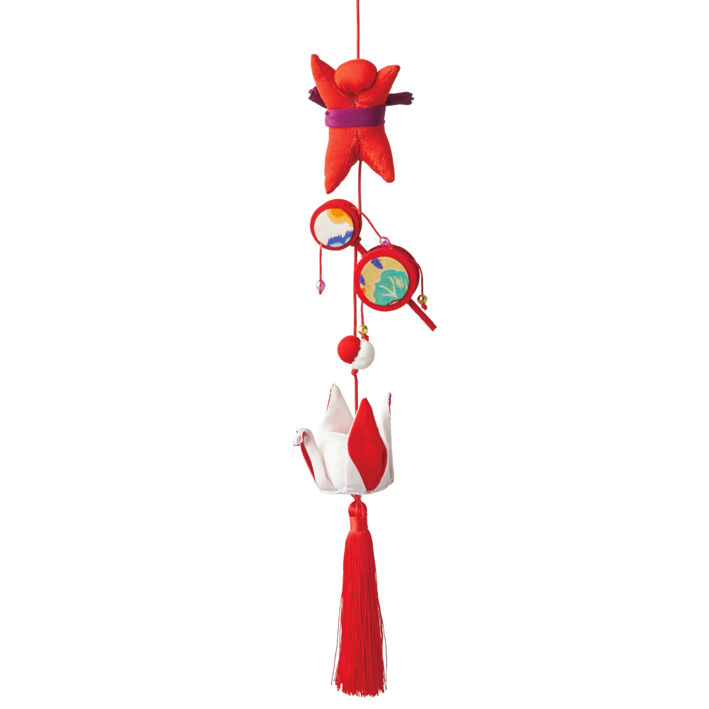 タペストリーの感覚で壁に掛けられるつるし飾り。\毎年人気の地球屋つるし飾りから、新タイプのタペストリー型つるし飾りが登場!/巨大なつるし飾りで有名な地球屋の職人が、鮮やかな色彩のちりめんを使って一つ一つ丹誠込めて手縫いしました。すっきり横並びに配置することで、場所を取らずに壁に掛けて飾りやすい、新しいつるし雛です。優しい表情のつるし雛や愛らしい小物たちは節句飾りとしてはもちろんのこと、縁起物のインテリアとして一年中お楽しみいただけます。5本タイプは、しっかりとつるし飾りがついているので、壁掛けでも存在感抜群です!ギネス世界記録も達成!地球屋のつるし飾り群馬県は伊香保温泉近くに店を構える地球屋。ギネス世界記録に認定された、1万3556個の縁起物が連ねる全長7.5mの巨大なつるし飾りが常設されています。