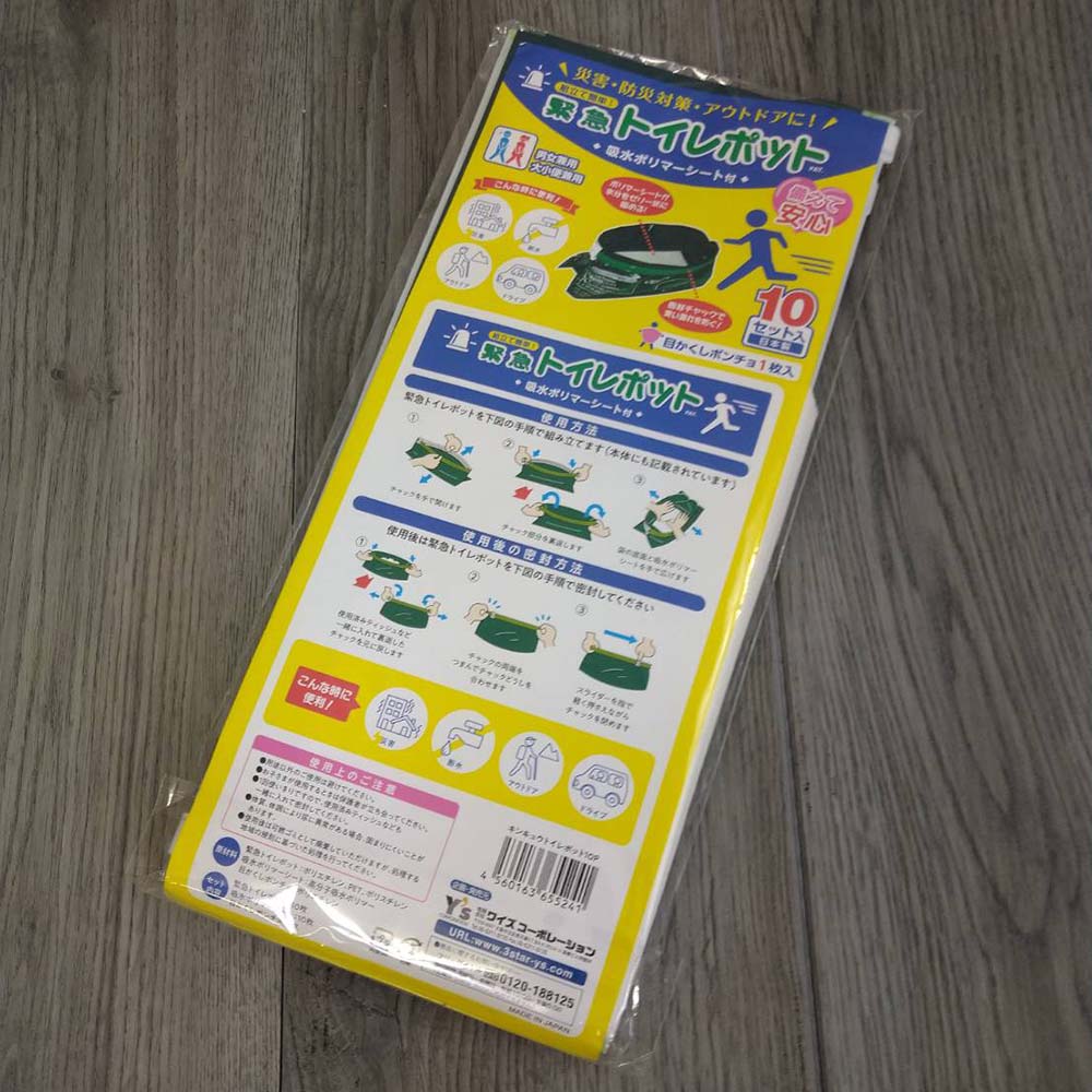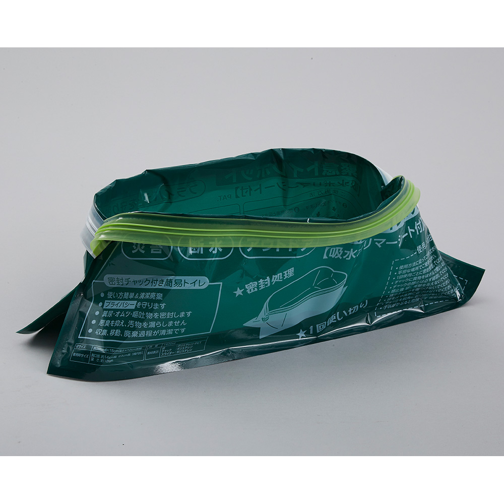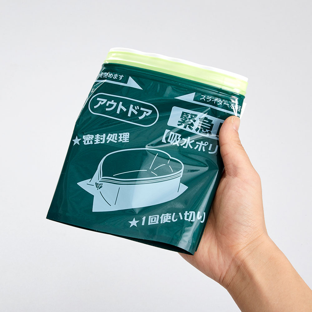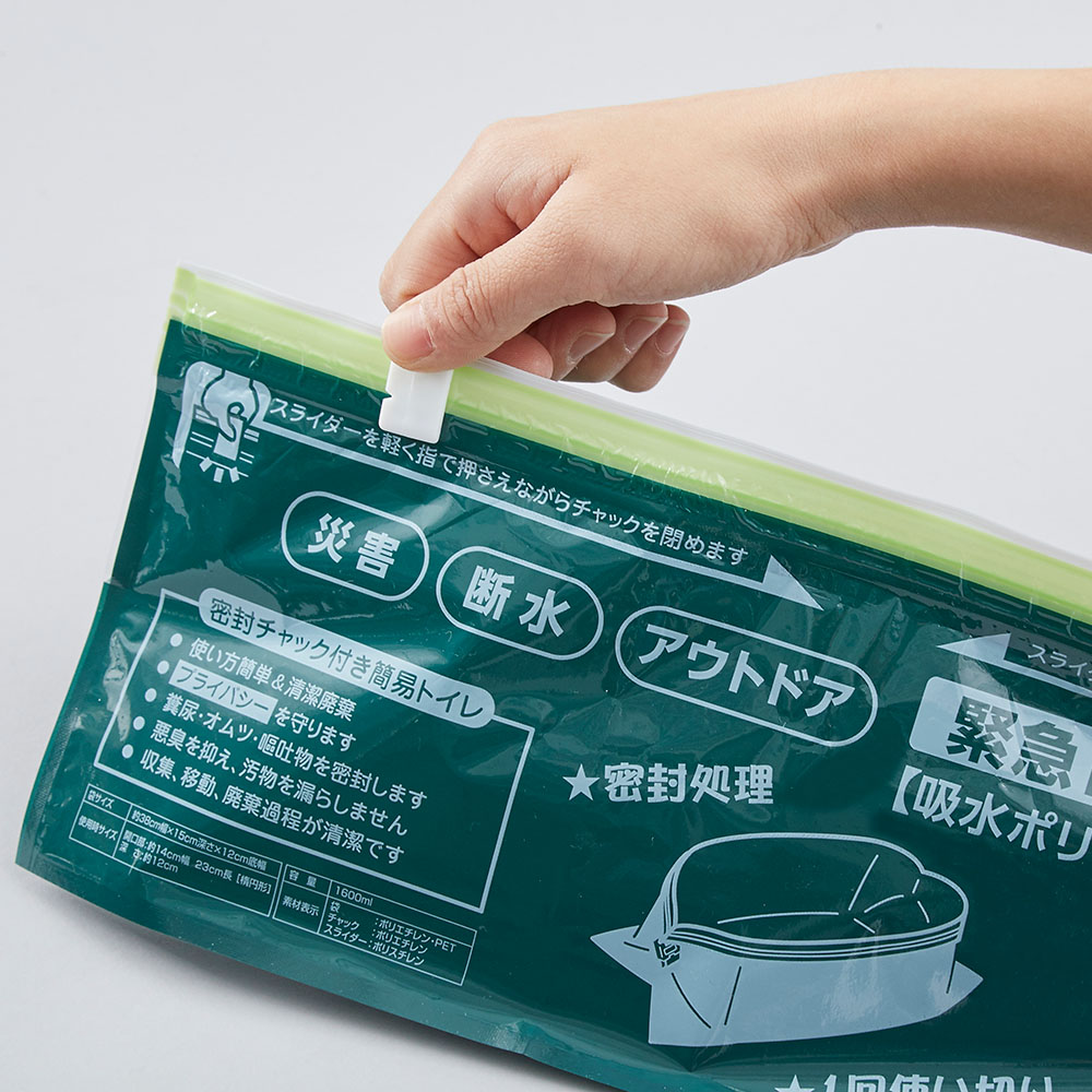災害・防災対策・アウトドアに備えて安心!組み立て簡単の緊急用簡易トイレ。あらゆる災害時や断水の時でも安心。スライダー付き密封チャックでにおい漏れを防ぎます。吸水ポリマーシートがゼリー状に固めて水分を吸収します。男女兼用、大小便兼用。目隠しポンチョ付き。