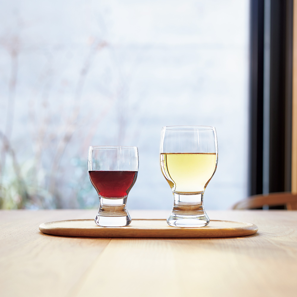 柳宗理が描く曲線美のワイングラス。持ちやすさと安定感を両立。普段使いもギフトも映える、和モダンな手仕事です。柳宗理が生み出した、日常に寄り添うワイングラス日本を代表するプロダクトデザイナー・柳宗理が1979年にデザインしたワイングラスが、現代の食卓にふさわしい形で復刻されました。東京の老舗ガラスメーカー「廣田硝子」と職人の手によって、長く愛される定番アイテムとして蘇った逸品です。職にによる手吹き成形で一つずつ丁寧に作られています。手仕事ならではの美しいカーブと厚みこの柳宗理ワイングラスの最大の特長は、厚みと丸みを持たせた、安定感のあるデザイン。繊細なカーブと持ちやすさにこだわり、手にしっくりと馴染みます。棚に並べたときの佇まいも美しく、普段使いはもちろん、おもてなしのシーンにもおすすめです。食卓を華やかに演出。多用途で使える2サイズ展開ワイングラスはS(約180ml)とL(約340ml)の2サイズをご用意。ワインはもちろん、Sサイズは日本酒やデザートカップに、Lサイズはビールやジュースなど様々なドリンクにもぴったり。家族の団らんや休日のリラックスタイムにもお勧めです。日常使いにうれしい丈夫さと上質感底にしっかり厚みがあり、安心感があります。薄すぎず厚すぎないリムで洗いやすく、気軽に毎日お使いいただけます。機能美を追求した柳宗理ならではのデザインで、上品さと実用性を兼ね備えています。大切な人への贈り物にもシンプルでおしゃれなボックス入りなので、誕生日や記念日のギフトにも選ばれています。自分へのご褒美はもちろん、ご夫婦やご友人への贈り物にも喜ばれるアイテムです。