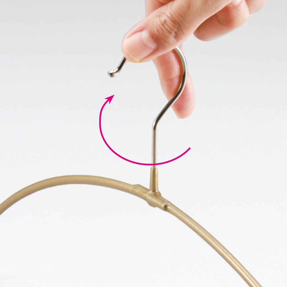 物干し竿に掛けたまま方向転換がOK。フックは90度回転可能。干す向きを変えたいときも便利です。 ※写真は人体スリムタイプです。