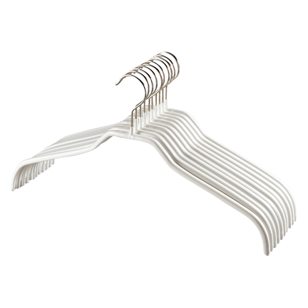 ずり落ちにくく、収納効率アップ!ハンガーのお悩みを一気に解消!MAWAハンガー レディースは、肩先の緩やかなカーブが、襟の開いたブラウスやキャミソールも美しくキープします。【まとめ買い特別価格!】30本組は10%OFF!、さらに60本組だと20%OFF!の特別価格に。特殊コーティング加工で、滑りにくい!MAWAハンガーいちばんの特長は、その滑りにくさ。ノンスリップコーティング加工で、襟の開いたブラウスやキャミソール、レーヨンなど滑りやすい素材のトップスもしっかりホールド。「気づいたら服がクローゼットの中に落ちてた…」「出そうとしたら隣の服が落っこちた…」なんて悩みはもうありません。ギュウギュウに詰まった衣類が半分に!厚みわずか1cmだから、シャツやカーディガン、コートなど、どんな洋服もしっかりホールドし、すっきり収納が可能。その結果、クローゼットの衣類が約半分のスペースに納まります!省スペースに収納できるから、洋服が増えても大丈夫!60年以上ハンガーを製造してきた、ドイツのMAWA GmbH (マワ社)MAWA GmbH (マワ社)は1948年にドイツで創業した老舗ハンガーメーカー。60年以上の実績を誇り、ドイツに特徴的な品質志向の企業文化の中で、伝統的な物作り企業の概念を大切にしています。機能性、耐久性に優れたノンスリップコーティング加工のハンガーが世界中で愛されています。まとめ買いがとってもお得!クローゼット模様替えを応援します!マワハンガーはまとめ買いがとってもお得!30本組は10%OFF!、さらに60本組だと20%OFF!クローゼットのハンガーを一気に取り替えて、すっきり模様替えしませんか?