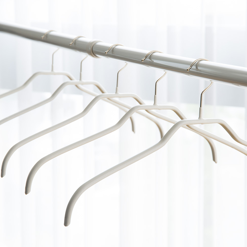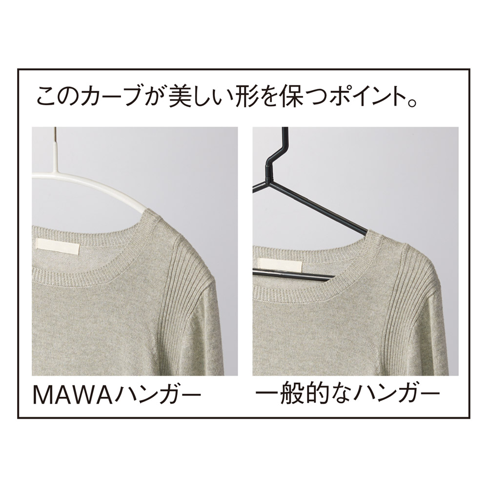 ずり落ちにくく、収納効率アップ!ハンガーのお悩みを一気に解消!MAWAハンガー レディースは、肩先の緩やかなカーブが、襟の開いたブラウスやキャミソールも美しくキープします。【まとめ買い特別価格!】30本組は10%OFF!、さらに60本組だと20%OFF!の特別価格に。特殊コーティング加工で、滑りにくい!MAWAハンガーいちばんの特長は、その滑りにくさ。ノンスリップコーティング加工で、襟の開いたブラウスやキャミソール、レーヨンなど滑りやすい素材のトップスもしっかりホールド。「気づいたら服がクローゼットの中に落ちてた…」「出そうとしたら隣の服が落っこちた…」なんて悩みはもうありません。ギュウギュウに詰まった衣類が半分に!厚みわずか1cmだから、シャツやカーディガン、コートなど、どんな洋服もしっかりホールドし、すっきり収納が可能。その結果、クローゼットの衣類が約半分のスペースに納まります!省スペースに収納できるから、洋服が増えても大丈夫!60年以上ハンガーを製造してきた、ドイツのMAWA GmbH (マワ社)MAWA GmbH (マワ社)は1948年にドイツで創業した老舗ハンガーメーカー。60年以上の実績を誇り、ドイツに特徴的な品質志向の企業文化の中で、伝統的な物作り企業の概念を大切にしています。機能性、耐久性に優れたノンスリップコーティング加工のハンガーが世界中で愛されています。まとめ買いがとってもお得!クローゼット模様替えを応援します!マワハンガーはまとめ買いがとってもお得!30本組は10%OFF!、さらに60本組だと20%OFF!クローゼットのハンガーを一気に取り替えて、すっきり模様替えしませんか?