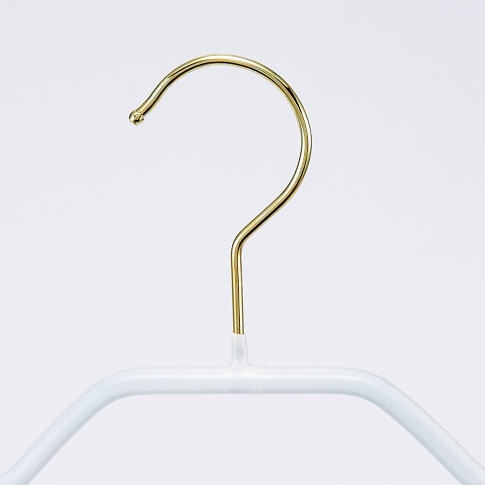 リピーター続出!人気のMAWAハンガーゴールドフック!掛けた服がずり落ちにくく、形崩れしにくいとリピーター続出!ドイツ生まれのMAWAハンガー。高級感が人気のゴールドフックタイプ!ボディカラーもゴールドを選べば全身金色。毎日の服選びが楽しくなって、身支度の効率もスピードアップできそう。◇特殊コーティングでずり落ちにくい着ようと思った服が落ちてクシャクシャ…なんてことありませんか?MAWAハンガーならノンスリップ加工で滑りにくく、繊細なブラウスやツルツルしたキャミソール、軽いスカーフもしっかりホールドして落ちにくい。◇ブラウスやニットが形崩れしにくい肩先に緩やかなカープを持たせたレディースハンガーとも、ニットなどの伸びやすい服をきちんとキャッチして型崩れを防ぎます。「着ようと思ったら肩がツンツン」という悩みがなくなりそう。◇ギュウギュウだった衣類が約半分に!厚みはわずか約1cm。コートやジャケットがしっかり掛けられるのに場所をとらず、今までの約半分のスペースに収納可能。ギュウギュウだったクローゼットがスッキリ、快適に模様替えできます。◇ドイツ生まれのMAWA GmbH(マワ社)MAWA GmbH(マワ社)は1948年にドイツで創業。ドイツの伝統的な物づくりを大切にし、60年以上ハンガーを作り続けています。〈ポイント〉◎高級感のあるゴールドフックでクローゼットがワンランクアップ。◎ノンスリップコーティングで滑りにくい。◎ハンガー全体で服をキャッチし、形崩れしにくい。◎シンプルで洗練されたデザイン。◎厚さ約1cm。衣類が約半分のスペースにスッキリ収納。