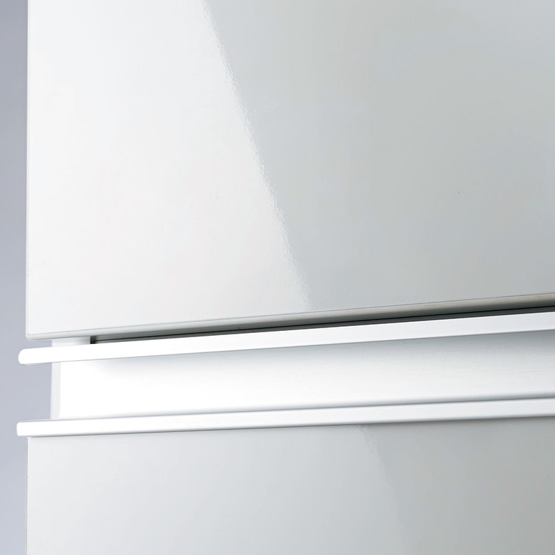表面は光沢PET樹脂の化粧仕上げ。水や汚れを気にせずに。