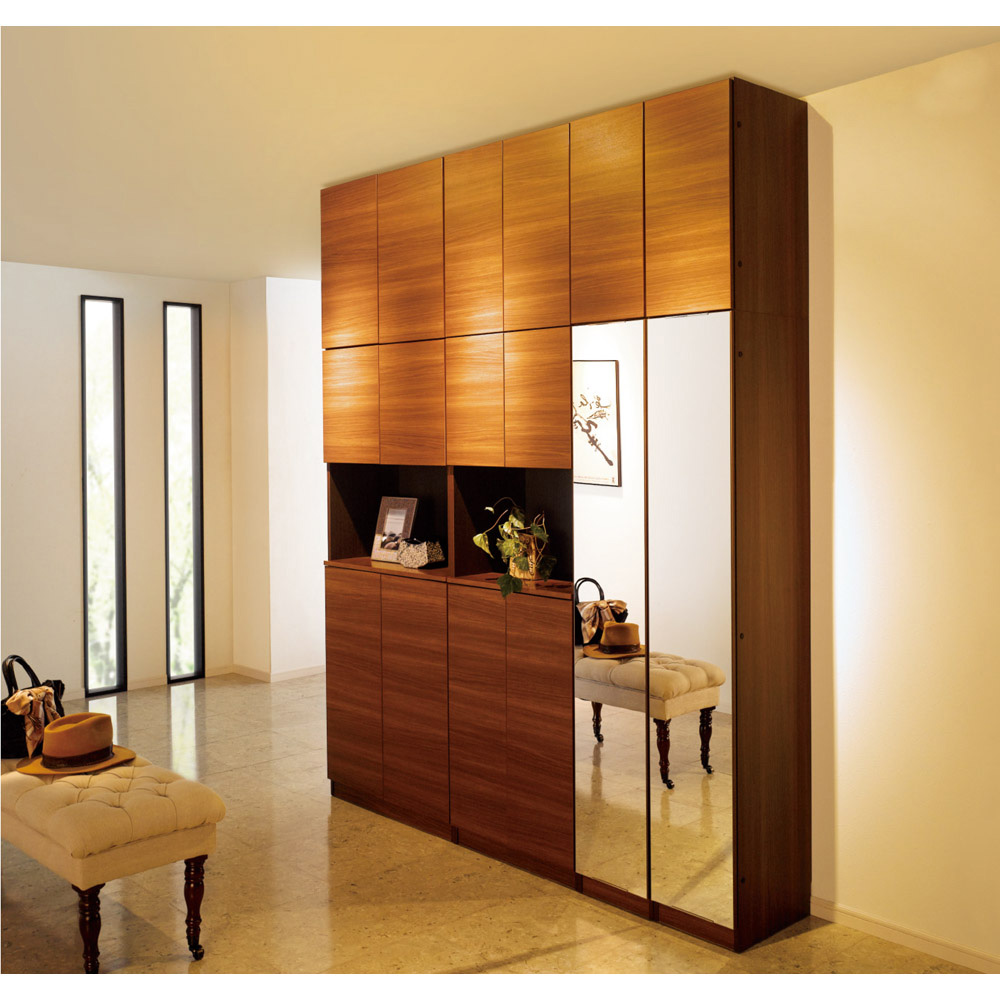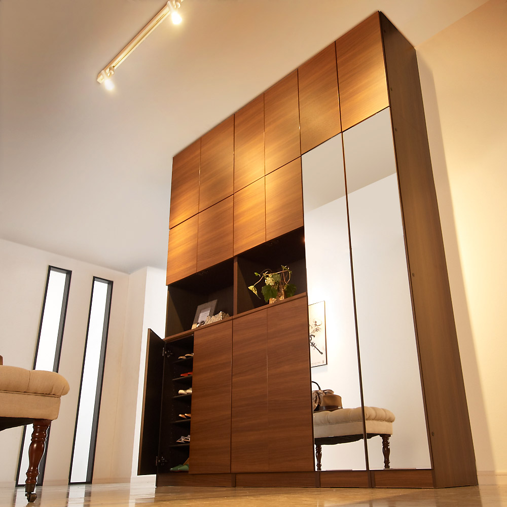 まるで、オートクチュールのような美しい下駄箱。上品な表情と用途を絞り込んだ収納で玄関を素敵に彩るシューズボックス。備え付け家具のように壁面を大量靴収納空間に。私のために作って欲しいを叶えます。あなたの個性を輝かせる!リフォームしたかのような玄関収納をあなたに。●自慢したくなる大量靴収納庫、お洒落でワンランク上の上質な時を奏でます。●デザインだけじゃない、充実の機能性や厳選した材料を採用。●玄関の顔にふさわしいおもてなしの心を感じるエントランス収納です。【家具職人の想い】●お洒落な女性の願いを叶えたい、ファッションだけで無く、家具にも上質を求める心の声を形にしました。●高級感のある佇まいと、日本製であるプライドを大切に心を込めて仕上げています。【製品情報】[色の種類]●純粋で清潔感のあるホワイト。●白を基調とした木目のある上品なホワイトシカモア。●明るく穏やかな印象のライトアッシュ。●静寂と寛ぎを感じるナチュラルオーク。●優しさと包容力を感じるミディアムオーク。●シックで落ち着いたブラックウォルナット。●風格と威厳を併せ持つダークオーク。●トレンドの男前インテリアにも合わせやすいグレーウォルナット。[サイズ・バリエーション]●幅は、30cm・60cm・75cm・90cm。ネット限定で、45cmもご用意。●本体高さは、95.5cmと180.5cm。●天井に合わせてオーダーできる上置きをネット限定でご用意。高さ30cm〜80cmまで1cm単位でオーダー可能。●本体とあわせると天井高さ213cmから263cmまで対応します。●玄関収納やクローゼットに設置してシューズを大切に包み込みます。[機能・構造・仕様]●ホワイトの扉は汚れが付きにくく、美しい光沢のある仕上げ。●ミラー扉タイプは、姿見としてお出かけ前のチェックや玄関を明るく広く感じさせてくれます。●扉には、世界トップクラスと言われているブルム社製のスライドヒンジを搭載。●靴サイズに合わせて可動する棚板は清潔に保てる水洗いできる樹脂製。●高さ95.5cmタイプの天板とオープンタイプの中天板は、水拭き可能な強くて美しい素材を使用。●傘収納タイプは、汚れ防止の樹脂製のトレー付き。バーを外せば高さのある掃除機なども収納可能(内寸高さ112cm)。【活躍空間】●エントランスの壁面収納家具として。●クローゼットに設置して、モダンな印象のシューズクローゼットとして。【担当者からのメッセージ】●リフォーム、リノベーションしたいけど価格が・・・。住設メーカーのお見積もりと是非見比べて下さい。●ご注文を頂いてから、日本の家具専門工場が丁寧に仕上げているオートクチュールな国産収納家具です。●出したら直ぐ使える日本製完成品も女性には嬉しいポイントです。