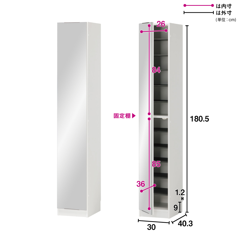 ※お届けはミラー扉(左開き) 幅30cmです。 ※写真の天井高さ240cm