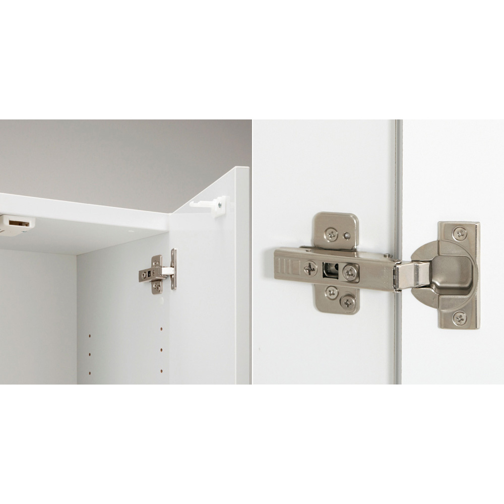 耐震ラッチが扉を自動的にロックします。耐久性抜群のブルム社スライドヒンジ搭載。