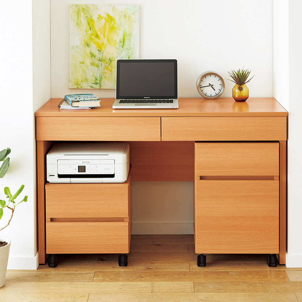 コーディネート例(ウ)ナチュラルオーク デッドスペースを活かしたワークスペース。 ※お届けはプリンターワゴンです。