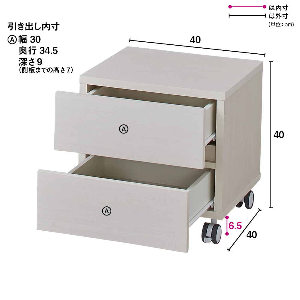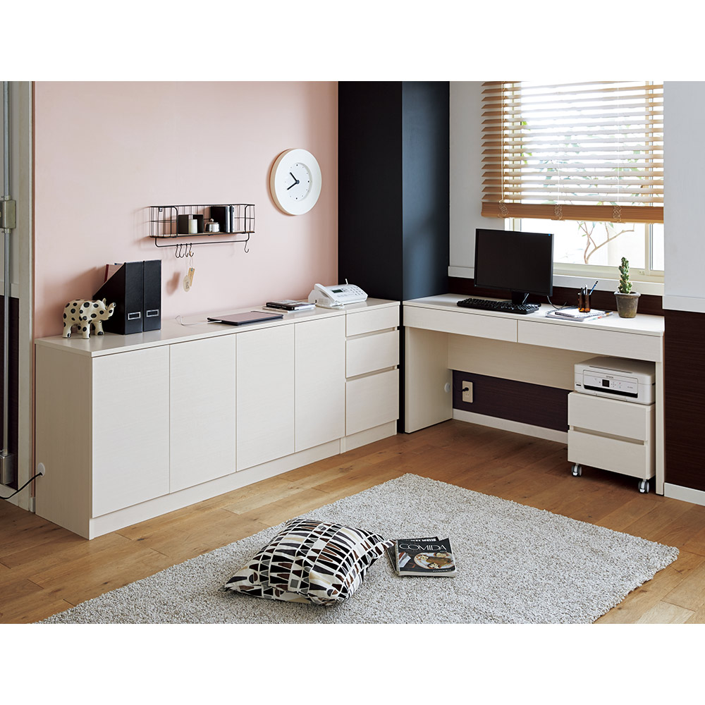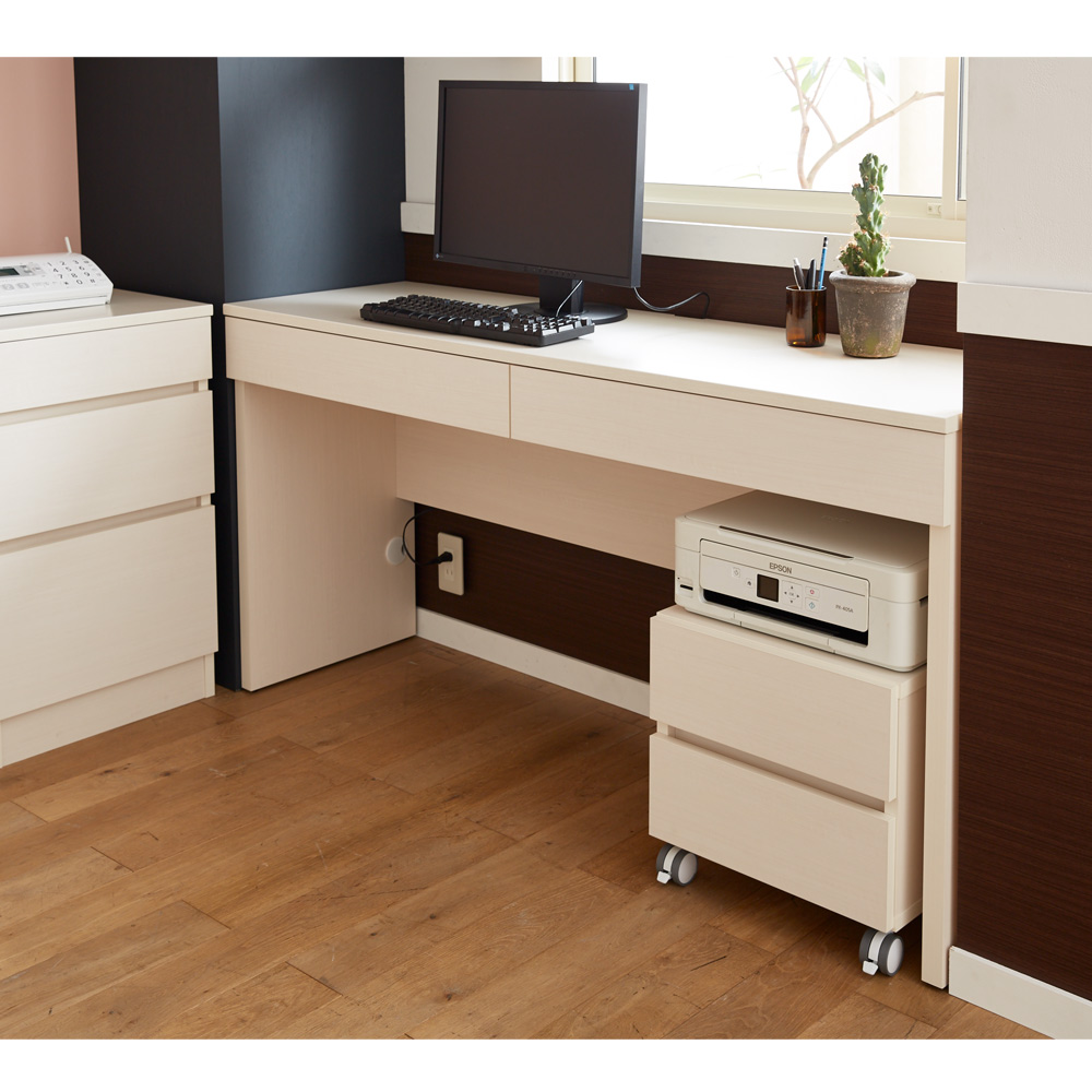 もたつく配線をすっきり隠せて、まるで造り付のようなワークスペースが完成。ツヤツヤ光沢から木目調まで、6色から選べるのも魅力。シリーズで組み合わせて、お部屋にしっくり机・収納庫◆幅オーダーできるデスクとキャビネットと合わせて、設置場所にぴったりに。◆造作家具や造り付けの収納のようなフィット感を、簡単お手軽に叶えます。◆用途に合わせてデスク幅、収納庫幅を選び、チェストやワゴンを組み合わせて、世界に一つのぴったりな収納に。◆奥行45cmの薄型設計で、リビング・寝室などでも省スペースに使用できます。どんなインテリアにもしっくり馴染む、シンプルデザイン。造り付けのような存在感を実現するため、シンプルな見た目にこだわりました。【プリンターワゴン幅40】◆キャスター付で移動ラクラクのキャスター付引出。◆キャスターはストッパー付きです。◆引出にはコピー用紙をしまっても便利です。◆デスク下に収まる奥行です。〜同シリーズ商品紹介〜【幅オーダーデスク】◆背面には電源タップ収納があります。◆天板には配線用のカキコミがあるのでコード類もすっきり。◆引出付きで書類や小物の収納にも便利なシステムデスク。◆側板には配線穴があるのでコードを横から通せます。◆単体で、学習机はもちろんPCデスクとしても◎。【幅オーダーキャビネット】◆デスクと同じ高さの収納庫です。本棚・ブックキャビネットとして使用できます。◆3cmピッチで調整できる可動棚板付き。◆天板には配線用のカキコミがあるのでコード類もすっきり。◆背板にくりぬきがあるので、コンセントがあってもふさぎません。◆側板には配線穴があるのでコードを横から通せます。◆扉部分は手で押すと開閉できるプッシュラッチ式。取っ手がないので壁と一体化するかのようなフラットさ。◆デスクサイドラックとしてはもちろん、単体で電話台・FAX台としても◎◆リビングの窓下などに設置すれば、ローボード・リビングボード・テレビ台・窓下収納としても活躍。◆廊下や寝室などに設置して書斎・書棚に収まりきらない雑誌収納やCD収納、DVD収納としても。【デスク横チェスト幅45】◆作業スペースを増やせる、デスクと同じ高さの引き出しです。◆上段には小物や書類を、最下段には雑誌やA4ファイルが収納できます。◆天板には配線用のカキコミがあるのでコード類もすっきり。【デスク下チェスト幅40】◆キャスター付で移動ラクラクのキャスター付引出。◆キャスターはストッパー付きです。◆上段には小物や書類を、最下段には雑誌やA4ファイルが収納できます。お家のインテリアに合わせて。選べるおしゃれなカラーバリエーション。◆ホワイト:つやつや光沢が美しく、インテリアを選ばないのでどんなリビング・ダイニングキッチンにも馴染むカラー。◆ホワイトシカモア:さりげなく上品な木目の入ったアイボリー。ホワイトより、カジュアルな印象です。◆ナチュラル:明るく自然な木目柄が柔らかい印象。床色や扉など住宅設備で多く使われる色合い。北欧家具・北欧インテリアにもマッチ。◆ウォルナット:シックで深みのあるウォルナット風の柄が魅力。大人でリッチなインテリアにぴったりマッチ。◆ダークオーク:オーク柄が魅力のシックで落ち着いた色味。モダンな空間に溶けこみます。安心と信頼の職人技が光る国産家具◆熟練の家具職人がひとつずつ丁寧に仕上げたワンランク上の収納付デスクシリーズです。◆細部の丁寧な仕上がりなど日本製ならではの高品質なデスク・収納をお楽しみください。◆素材はJIS規格の定める安全性の高いF☆☆☆☆を使用しました。◆完成品でのお届けになりますので届いたその日からお使いになれます。◆デスク下チェスト・プリンターワゴンのみキャスター取付の必要がございます。※当ページはプリンターワゴン単品の購入ページになります。
