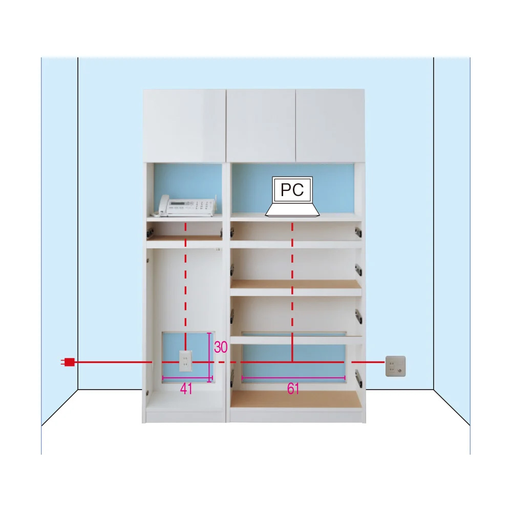 (ア)ホワイト 上部扉内内寸: 幅41奥行34高さ35cm(棚板:3cm間隔調節3段 ) 下部扉内内寸:幅41奥行34高さ85cm(3cm間隔調節15段) ※画像は左開きです。 ※こちらはスイッチ避けタイプ(オープン部背板なし)です。