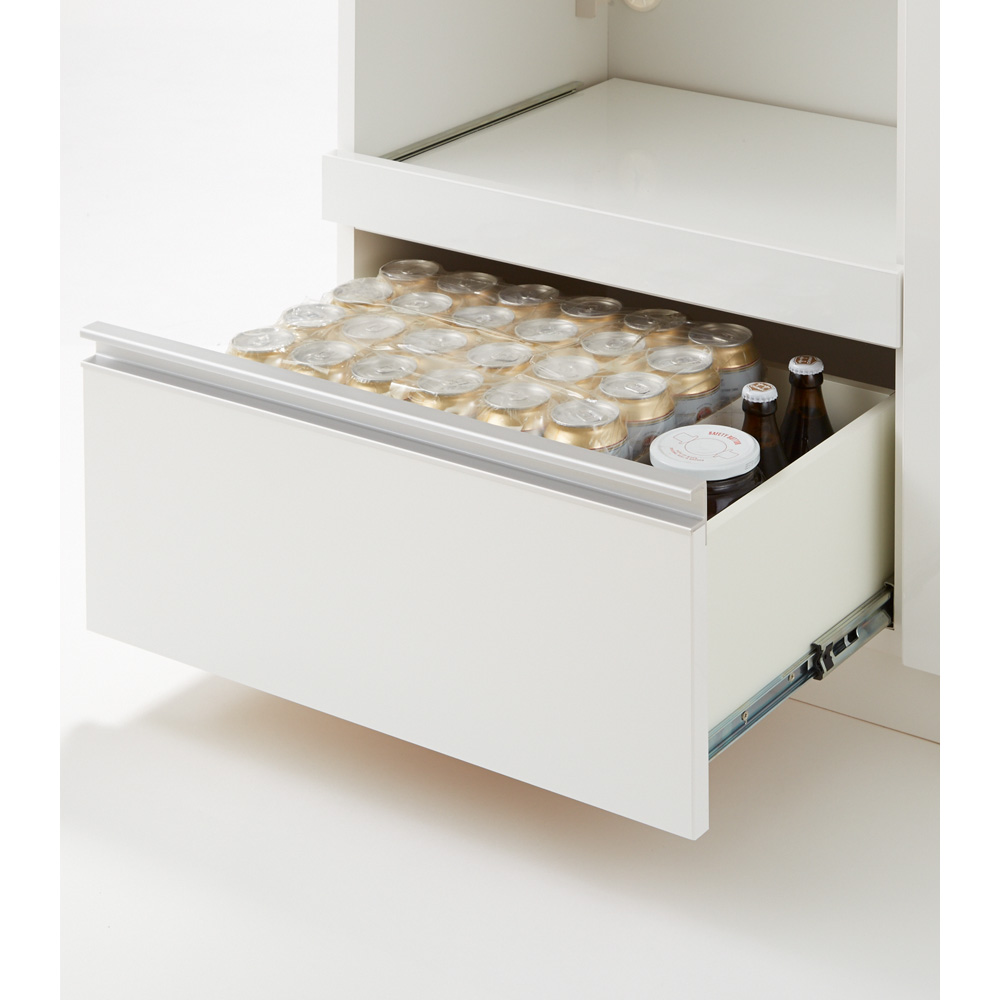 最下段の引出しは奥まで引き出せて取り出しやすいフルスライド仕様。
