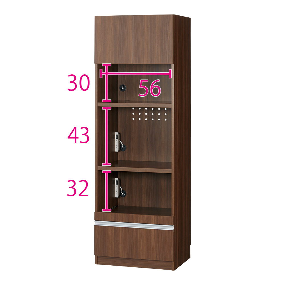 お届けは【レンジボード 幅60cm】です。(ウ)ダークブラウン ※赤文字は内寸(単位:cm)オープン部奥行46cm