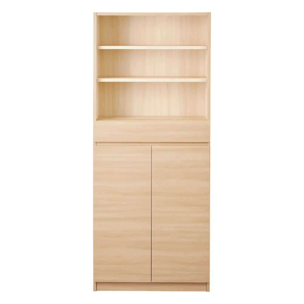 壁のスイッチ類を避けて設置でき、配線をすっきり隠せる壁面収納。突っ張り式上置き(別売り)は高さオーダーできるのでまるで造り付け。コードを隠しつつ、コンセントを活かす工夫も。壁のスイッチやインターフォン、コンセントを避けて、壁一面に収納を。収納を増やしたい!でも壁にスイッチ類があり窓下収納サイズしか置けない…というお悩みを解決!スイッチ避けタイプは電気のスイッチがある高さがオープンになっており、コンセントがある位置は背板をくり抜いているので壁にある物を気にせずに設置できます。また、ルーター、電源タップなどのコード類をすっきり隠せる工夫も満載。大量収納スペースが欲しくても置けなかった方のお悩みを解消できる収納庫です。リビングやダイニング、狭いコーナー、書斎、梁のある場所など家中のどんな場所にもフィットし、収納場所を造りながら簡単にお部屋の模様替えができます。設置したい場所にぴったり。上置きは高さ1cm単位でオーダーできるオーダー家具◆上置きは高さを30〜80cmの間で1cm単位でオーダーすることができます。◆天井高さ212cm〜262cmまで対応でき、スペースを有効活用できます。◆それぞれの設置したい場所にぴったり合わせて、まるで造り付けの収納のように。アイディア満載の細部にこだわった造り◆高さ110cmの位置にある、オープン部分。スイッチを避けられる仕様です。コレクションをディスプレイして飾り棚にも。◆オープン部の中天板は配線できる仕様。中天板奥にカキコミがあるので、電話台・FAX台としても大活躍。音楽プレーヤーやデジタルフォトフレームを飾っても◎◆背板のくりぬきで、コンセントをふさがない。コンセントをふさがず設置できるので、コードを隠して扉内で配線可能。中天板に置いた電子機器もこちらで配線可能です。◆側板に配線穴があり、設置後も配線ラクラク。側板の配線穴からコードを通せて、すっきり。◆スイッチ避けタイプ、収納庫タイプをご用意。オープン部のあるスイッチよけタイプとオープン部の無い収納庫タイプをご用意。スイッチの無い所には収納庫タイプを設置すればより大量収納ができますどちらにも扉タイプと引出タイプがあり、用途に合わせてお選びいただけます。◆引き出しは全段フルスライドレールで開閉ラクラク。スムーズに開けられる上に、探しやすいのもうれしいポイント。◆プッシュ扉ですっきり隠して。扉部分はプッシュ式で取っ手が無くシンプルな見た目です。耐久性抜群のブルム社スライドヒンジ搭載で高級感のある仕様です。◆3cmピッチ可動棚板で収納物に合わせて調整可能◎ピンを棚板に差し込むタイプの棚ダボで、外れや落下を防止します。本棚・CD収納としても。壁一面に並べて大量収納ブックシェルフ。キッチンにもなじむシンプルなデザインなので食器棚としても◎◆上下連結で耐震性向上。化粧キャップ付きボルト連結で、隙間やズレを抑えます。◆幅木よけカットで壁にぴったり設置。上置き以外のアイテムに巾木よけカットがあるので、壁につけておいて頂けます。選べるおしゃれな3色。理想のお部屋のイメージに合わせて。◆(ア)ホワイトはお部屋を選ばない、透明感のある美しい光沢感が魅力。清潔感あるキッチンインテリアにもお勧め。◆(イ)ライトアッシュは優しい色合いと木目柄が、ナチュラルモダンなインテリアにお勧め。モダンな北欧家具や北欧インテリアとマッチ。◆(ウ)ウォルナットははっきりとした天然木調が印象的。大人のシックなインテリアにぴったり。書斎で書棚使いも重厚感があり魅力的です。◆(エ)モードブラックはニュアンスを感じさせるテクスチャーが特長。洗練された黒を主役にすることで、都会的なお部屋を演出できます。安心と信頼の職人技が光る国産家具◆熟練の家具職人がひとつずつ丁寧に仕上げたワンランク上の壁面収納です。◆細部の丁寧な仕上がりなど日本製ならではの高品質な家具をお楽しみください。◆環境に配慮したF☆☆☆☆の材料を使用した商品です。