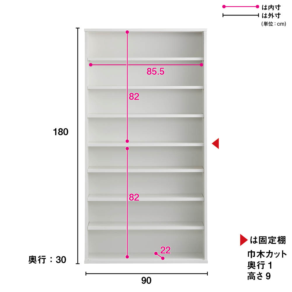 棚板は3cm間隔で高さを変更できます。