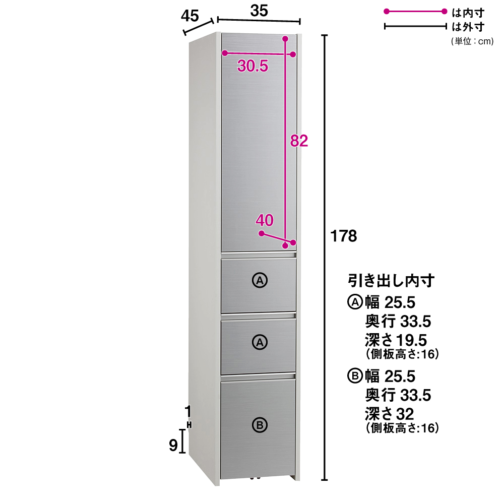 引き出しはフルスライドレール付きで、奥まで開閉スムーズ。