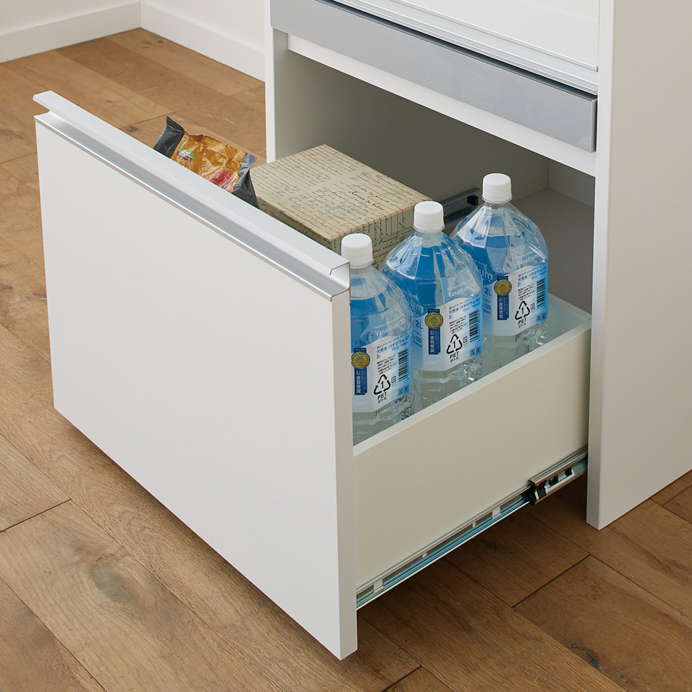引き出しはフルスライドレール付きで、奥まで開閉スムーズ。