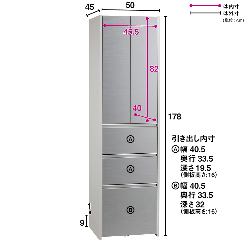 引き出しはフルスライドレール付きで、奥まで開閉スムーズ。