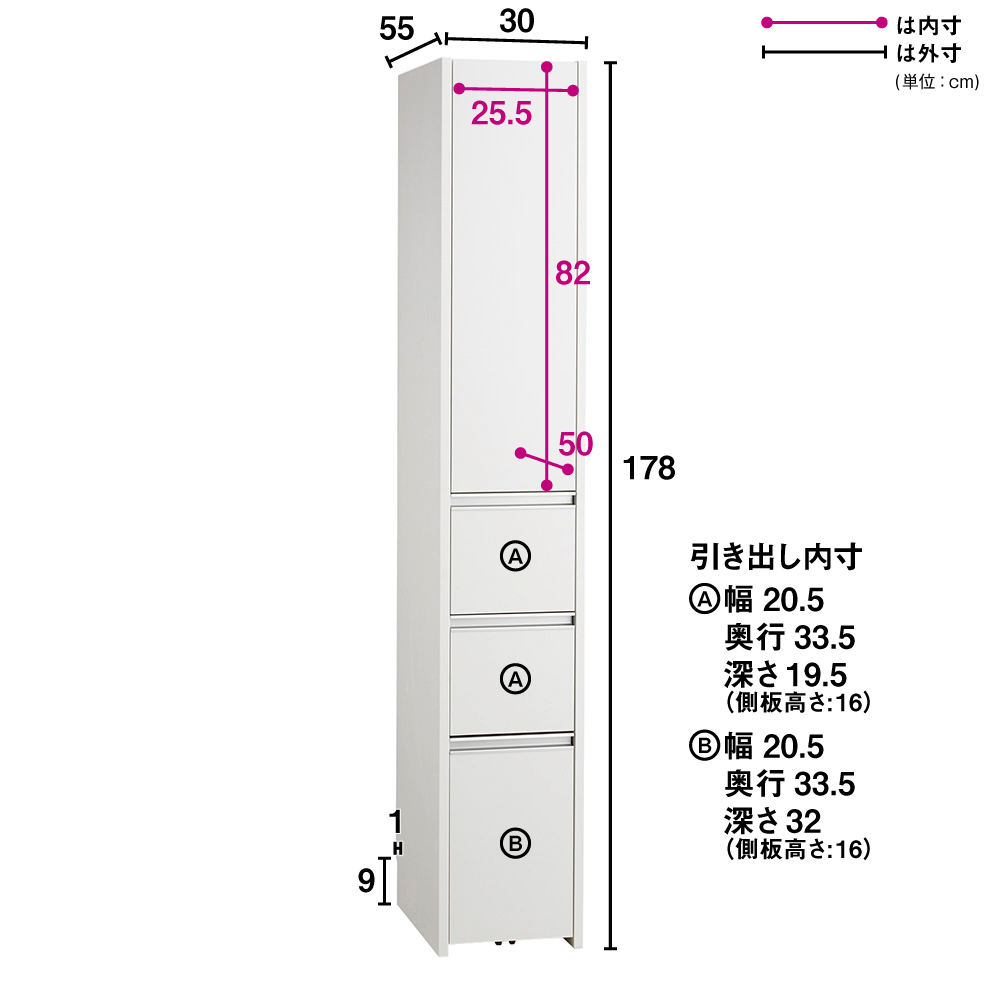 棚板は収納物にあわせて3cm間隔で調整可能。