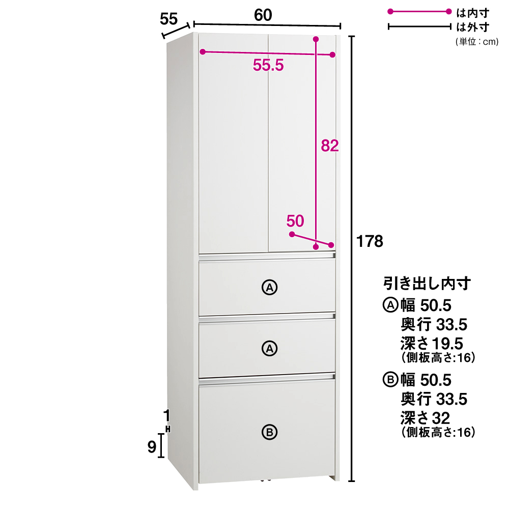 引き出しはフルスライドレール付きで、奥まで開閉スムーズ。