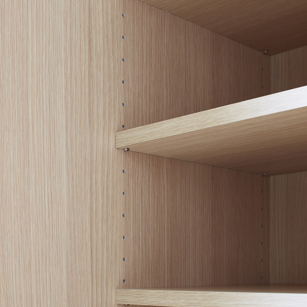 可動棚板は3cm間隔で調整可能。棚板耐荷重15kg。小さく軽いモノから大きく重いモノまでなんでも収納。