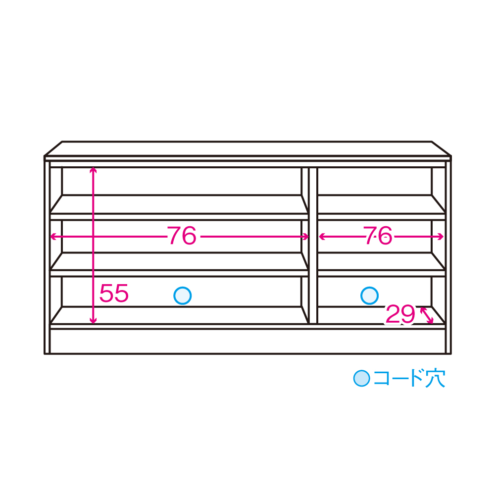 扉内背面にコード穴付きで配線もすっきり。