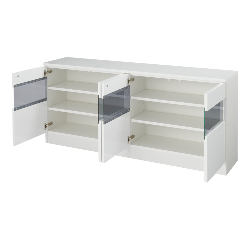 (ア)ホワイト光沢 アクリルラインがアクセントのスタイリッシュなテレビ台。