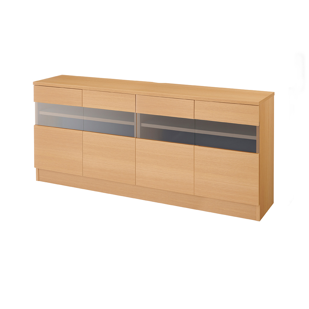 統一感のあるデザインで、テレビ視聴も在宅ワークも叶えるシリーズのテレビ台。奥行35cmの薄型だから、リビングにも圧迫感なく設置できます。テレビもテレワークも収納もおまかせのユニット。シリーズを組み合わせて機能的な美空間を!●同シリーズでレイアウトすることで、テレビとワークスペースの一体化が叶い、ホテルのような洗練された空間がつくれます。●テレビ台は幅80.5cm・幅120.5cm・幅160.5cmの3サイズをご用意。お部屋の広さやテレビサイズに合わせて選べます。●デスクは幅が1cm単位でオーダーでき、限られたスペースにぴったり設置が可能。「70cm〜90cm」と「91cm〜120cm」の2タイプをご用意。●チェストは狭い場所にも置きやすい幅40.5cmのスリムサイズ。3段の引き出しに、文具や書類・ゲームソフトなどさまざまな物がきれいに整理できます。●キャビネットは幅60.5cm・幅80.5cm・幅120.5cmの3サイズをご用意。設置場所や収納量で選べます。引き出し付きなので、細々したものも整理できます。テレビが見やすく、おしゃれなデザイン●ライン状にあしらったアクリルがアクセント。シンプルなのに品よくスタイリッシュな佇まいです。●大型テレビも置けるワイドな幅160.5cm。65Vまでのテレビに対応します。●ダイニングチェアやベッドから、またソファに座ってテレビを見るのに適した高さ70cm。奥行35cmの薄型だから圧迫感もなく、お部屋を広く使えます。●シリーズのサイズオーダーデスク・チェスト・キャビネットと同じ高さ・奥行なので、見映えよく並べられます。収納スペースも充実、使いやすい工夫も!●天板下は扉付きの棚仕様。たっぷり入り、散らかりがちなリビングも整然と片付きます。可動棚4枚付きで、棚板は3cm間隔・11段階に高さ調節できます。●テレビ下に収納を充実させることで、よく使う物を他の部屋にいちいち取りに行かなくて済むというメリットもあります。●扉は軽く押すと開くプッシュ式。開閉がラクで見た目もスマートです。●デッキ収納部はライン状にアクリル貼りで、扉を閉じたままリモコン操作ができます。また、扉内背板にはコード穴付きで、配線もすっきり。お部屋のインテリアに合わせて6色から選べます色は(ア)ホワイト(光沢) (イ)ブラック(光沢) (ウ)ナチュラルオーク (エ)ダークオーク(オ)セピアウォルナット (カ)グレーウォルナット の6カラーをご用意しました。●(ア)(イ)は光沢仕上げで(ウ)〜(カ)は風合いのある木目シートを使用。●汚れに強く、お手入れも簡単な素材です。●ホルムアルデヒドの発生を最小限に抑えたグレードの素材(F☆☆☆☆合板・塗料・接着剤)を主材にした商品です。●丈夫で丁寧なつくりの日本製です。●組み立て不要の完成品でお届けしますので、届いたらすぐにご使用いただけます。シリーズ商品のご案内「省スペースホテルライク ハイタイプテレビ台シリーズ」は以下のシリーズ商品がございます。・テレビ台幅80.5cm・テレビ台幅120.5cm・テレビ台幅160.5cm・幅サイズオーダーデスク幅70〜90cm・幅サイズオーダーデスク幅91〜120cm・チェスト幅40.5cm・キャビネット幅60.5cm・キャビネット幅80.5cm・キャビネット幅120.5cm