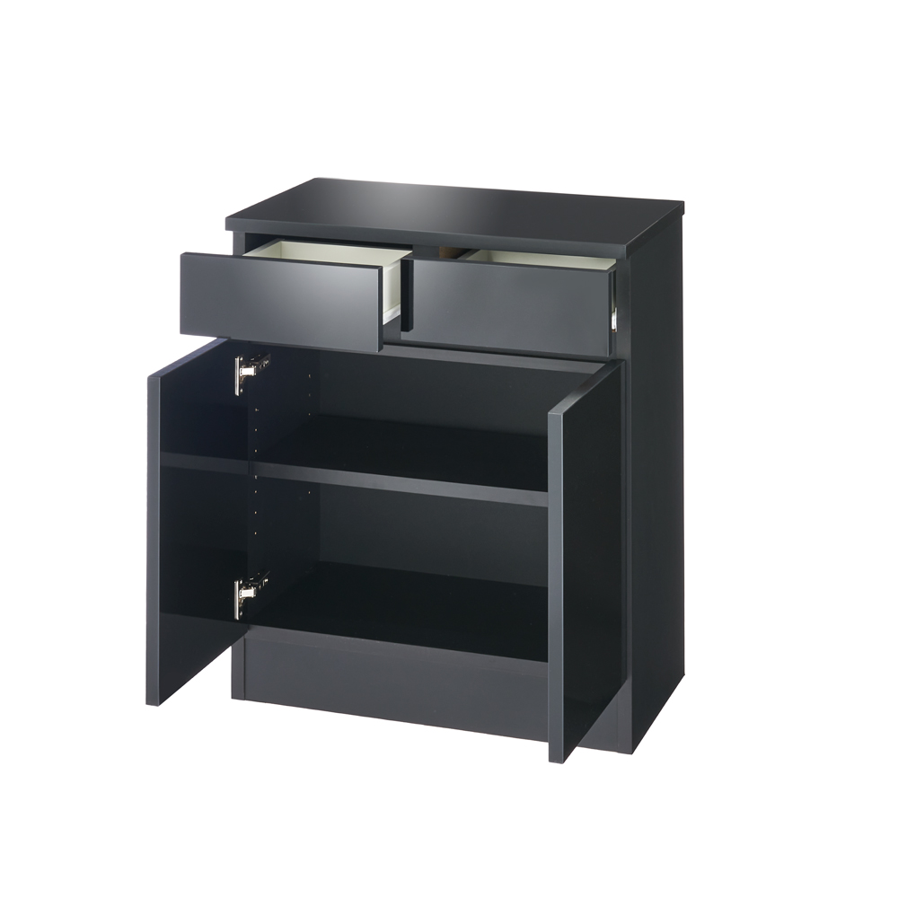 (イ)ブラック光沢 両開きで収納物がサッと見渡せます。