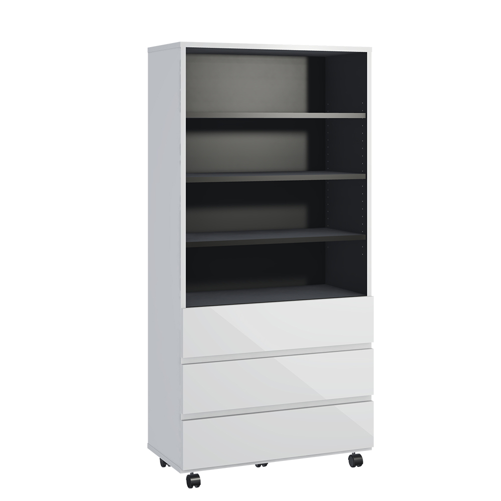 コーディネート例:ホワイト ※お届けは「棚&引き出しタイプ」となります。キャスター付きで模様替えや移動もラク。