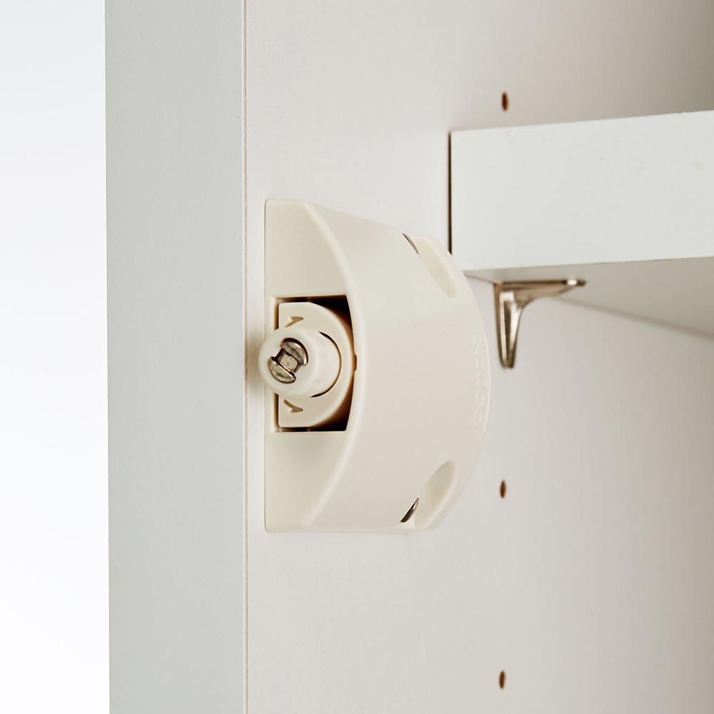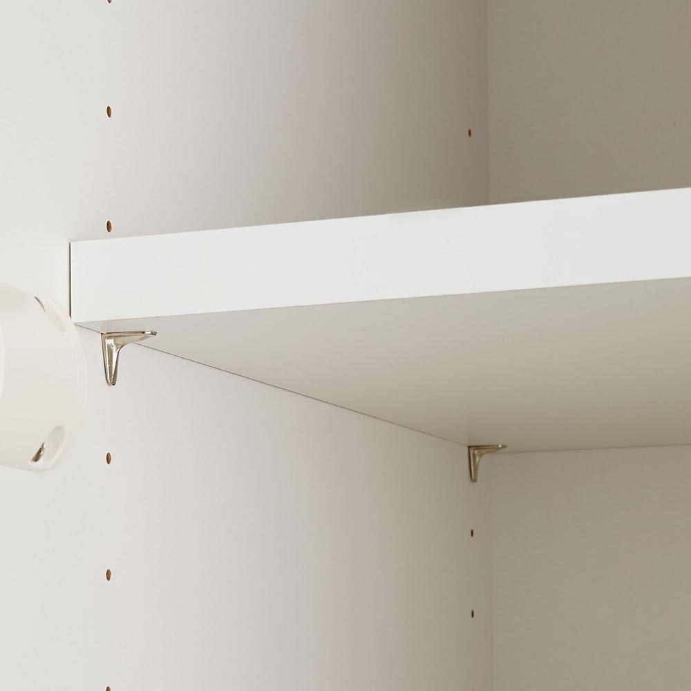 棚板は金属の差し込み式のダボでしっかり固定。急な脱落などが起きにくい構造です。
