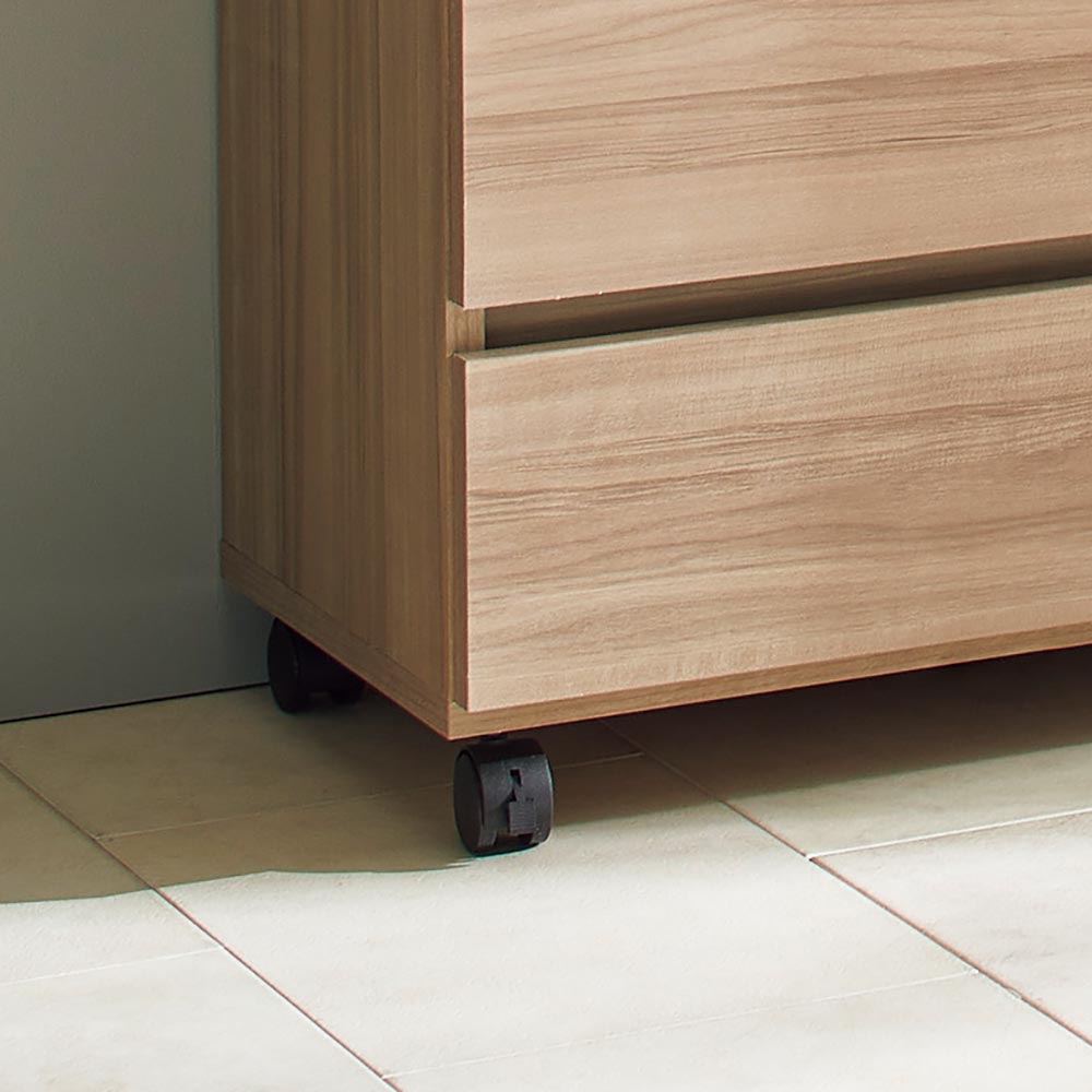ブラックのキャスター付き。手前2個はストッパー付きで固定してお使いいただけます。