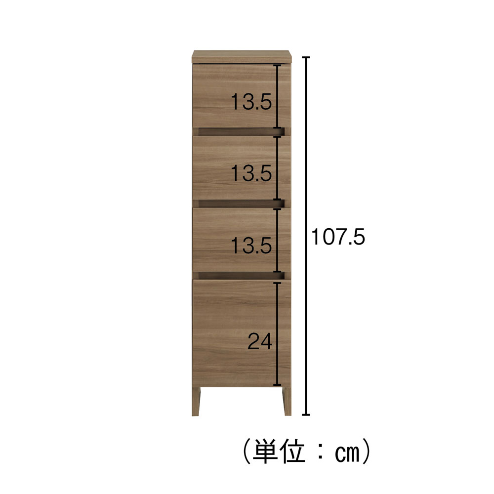狭いランドリーにも置けるスリムなモダンデザイン。わずかなすき間を有効活用して分類収納できるから、すっきりとモデルルームのような褒められサニタリーに。アイテム別、家族別に洗濯物を分類収納できるので、脱衣所を効率化したい時短派にぴったりです。すき間を有効活用できるサイズバリエーション●高さ86cm(3段):洗面台横にぴったりの高さ●高さ107.5cm(4段):洗濯機横にぴったりの高さ●高さ150cm(6段):小柄な女性でも無理なく引き出せる高さ幅は30・45cm、奥行は30・40cmからそれぞれ選べます。アイテム別、家族別に洗濯物を分類収納引き出しの中身は衣類やタオルをいつでも清潔に保てるよう、すべてに内部化粧が施してあります。下着などもひっかかりなく大切にしまえます。アイテム別、家族別に洗濯物を分類収納できるので、脱衣所を効率化したい時短派にぴったりです!●浅引き出し:タオルや家族分の下着やパジャマなど●深引き出し(最下段のみ):洗剤の詰め替えパックやスプレー類など 背の高いボトル類も立てて収納できます。こだわりのサニタリーに似合う、スリムなモダンデザイントレンドのモルタルや石目調のこだわりのサニタリーにも似合う石目柄ダークグレーも加えた全3色のカラーバリエーション。さらに取っ手レスでスマートな印象に仕上げました。また全ての天板・前面は水ハネにも耐える素材を使用しているので、汚れてもサッと拭くだけでお手入れも簡単!洗濯機近くや洗面台の隣でも安心してお使いいただけます。安心と信頼の国内生産品日本の熟練の家具職人がひとつずつ丁寧に仕上げたワンランク上の商品です。国産家具だからこその丁寧な仕上がりにより、安心して長くお楽しみいただけます。面倒な組み立てのない完成商品商品は、組立不要の完成品でお届けします。届いたらすぐにご利用いただけるのも嬉しいポイントです。