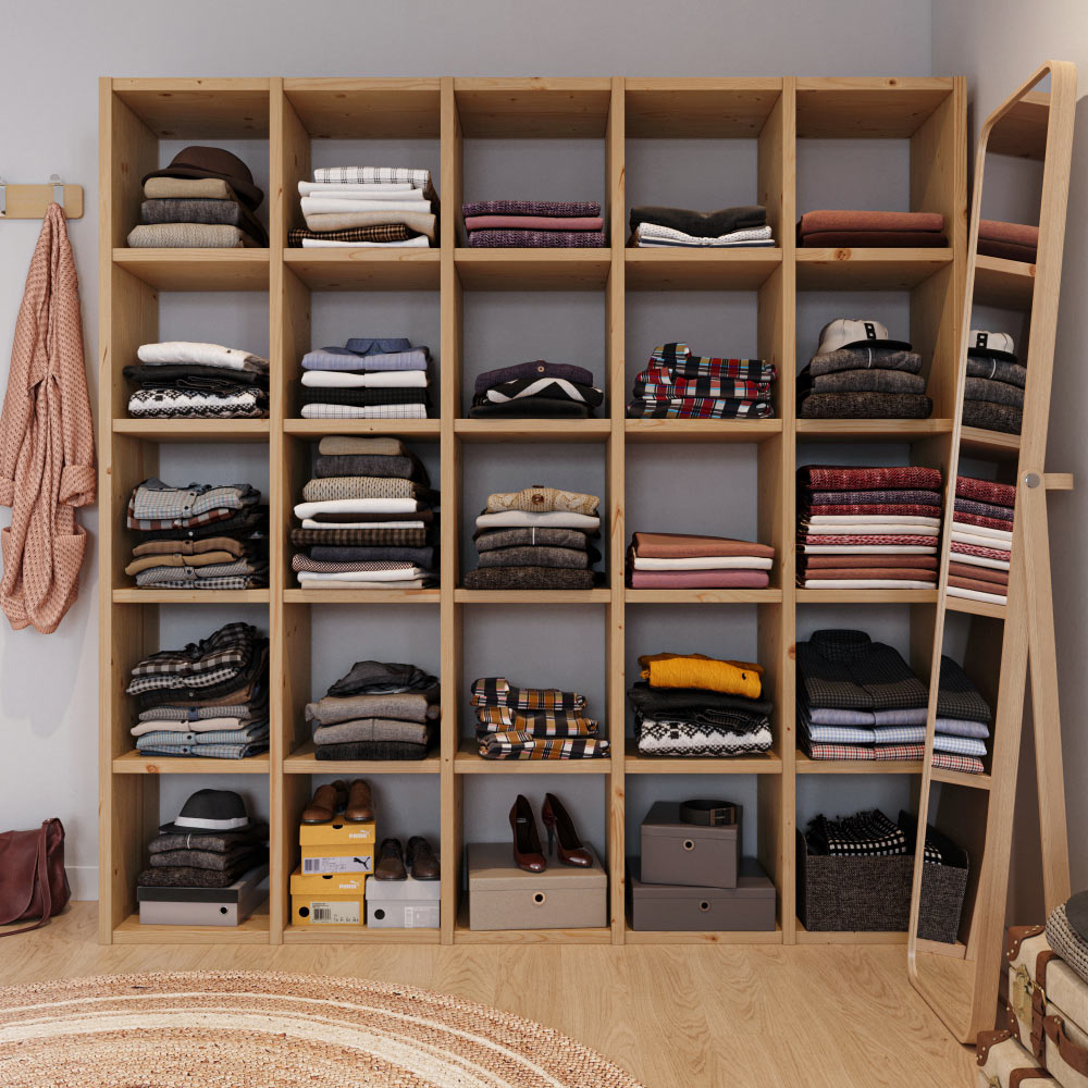 国産杉無垢材ならではの頑丈さ。洗練された天然木のオープンシェルフ。長く使うほどに味わいが増すサステナブルなオープンシェルフ兵庫県播磨エリアの豊富な森林資源を活かして、杉天然木を使用した心温まるラックを職人と共に開発しました。杉の爽やかな香りがお部屋に広がります。本棚や飾り棚、クローゼット収納、壁面収納など、さまざまな用途でお使いいただけます。収納部内寸は幅33.5cm奥行30.5cm高さ33.5cm。LPレコード、A4ファイル、雑誌類、重たい書籍もしっかり収納できます。棚板耐荷重があるので、工夫次第で様々な用途に棚板1枚あたりの耐荷重は30kgなので、重たいアイテムも安心して収納可能です。更に幅が33.5cmと短いので棚板がたわみません。ブックシェルフや、ディスプレイ棚、おしゃれなショップのクローゼットのように洋服を平置きするなど、多用途に活用できます。工夫次第で、見せる収納の可能性が広がります。棚の横列と縦の段は全部で12通りのサイズからお選びいただけます。梁や窓の高さに合わせて複数組み合わせても、単体で使ってもOK。シンプルなデザインがお部屋のインテリアに自然と馴染み、便利に使えるアイテムです。造り付けの家具より安くリーズナブルに壁面収納をつくりことができます。さらに組立商品なので模様替えや引っ越しが多くても安心です。建築材にも使われる丈夫な国産杉杉は古くから建築材料として使用されてきました。このオープンシェルフは、国産杉の原木を兵庫県宍粟市の兵庫木材センターで製材。近隣の家具メーカーでその材料を加工し家具を製造しています。材料供給から製造まで地元企業で連携をとることで、持続可能な森林育成を推進しています。素材を知り尽くした家具職人が、受注を受けてから一つずつ丁寧に仕上げています。修正無垢材には安心・安全なF☆☆☆☆クラスの接着剤使用シックハウス症候群の原因となるホルムアルデヒトの含有量が最も少ないF☆☆☆☆クラスの接着剤を使用し、健康に配慮した安心・安全な作りになっています。合板は一切使用していない無垢の家具です。節のある表情も自然ならではの恵み木目や節が一枚ごとに異なる趣があるのも天然木の特長です。本来なら破棄されてしまう場合もある死節がある部分も有功活用しています。天然素材ならではの風合いをお楽しみください。また、杉天然木は日光に触れることでゆっくりと色味が濃くなり、年月と共に味わい深い風合いに変化。清々しい杉の香りで、まるで森林浴をしているかのような心地よさを楽しめます。