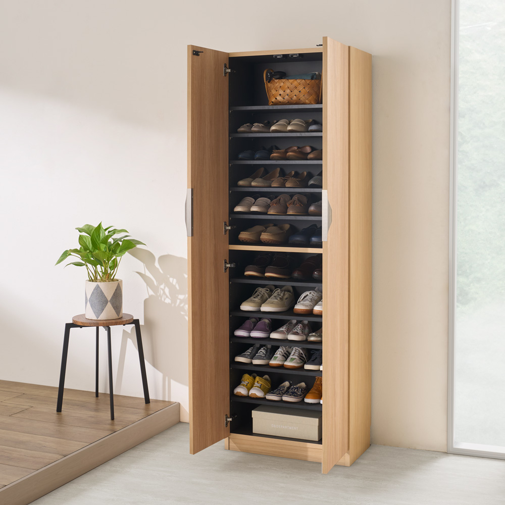 (エ)前面・側面:ナチュラル/内装:黒木目 内寸奥行28cmで、家族の靴サイズが25cm程度なら必要十分。狭い玄関もすっきりと。 ※写真はお届けする商品です。