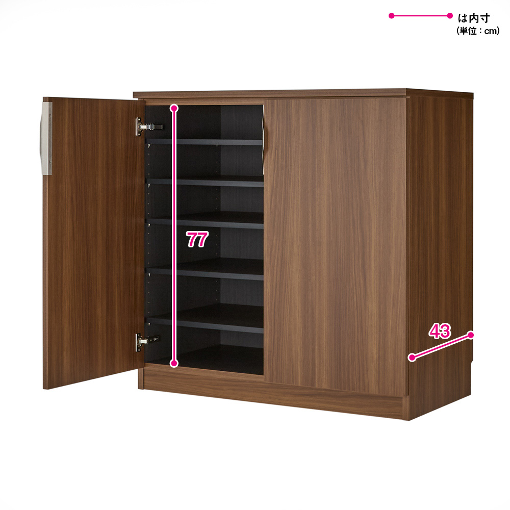 (ウ)前面・側面:ウォルナット/内装:黒木目 内寸奥行43cmで、靴はもちろん遊び道具や防災用品など、さまざまなものが収納可能。 ※写真はお届けする商品です。
