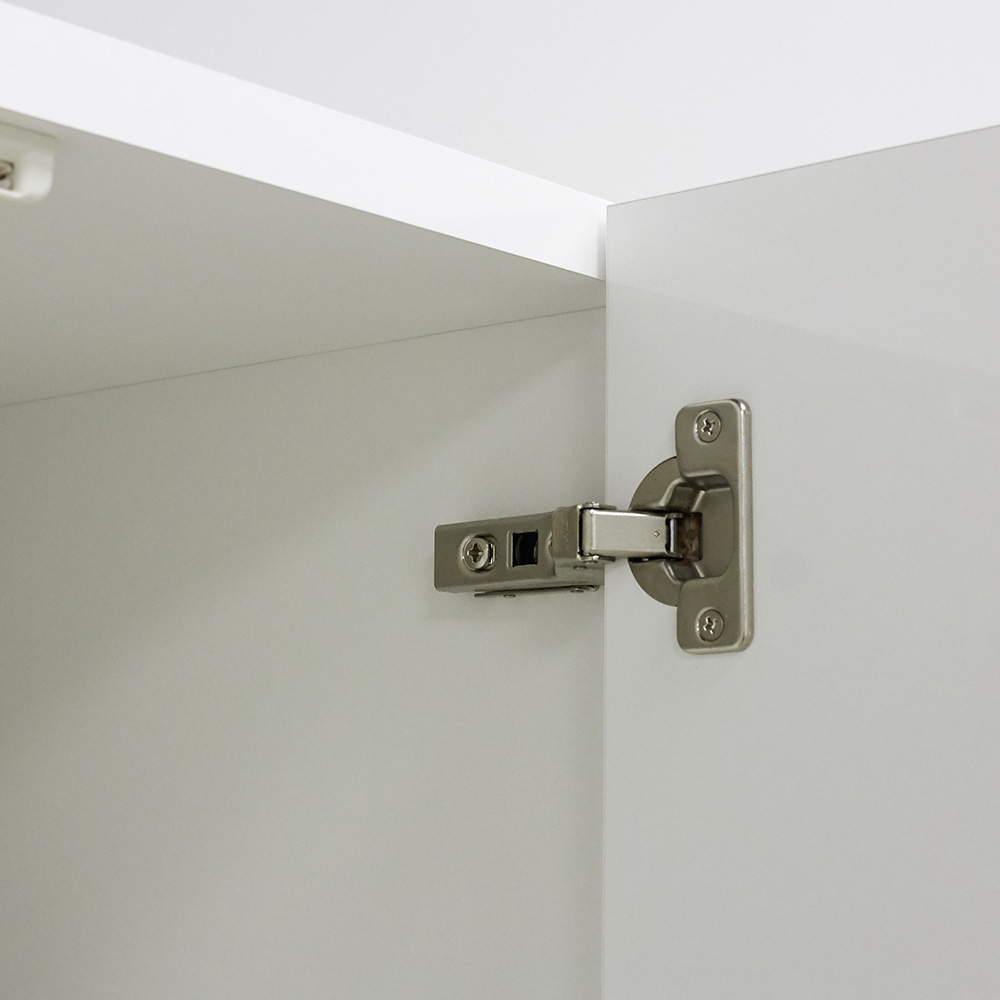 扉を取り付けている蝶番金具。ドライバーを使用して、扉位置の微調整が可能です。